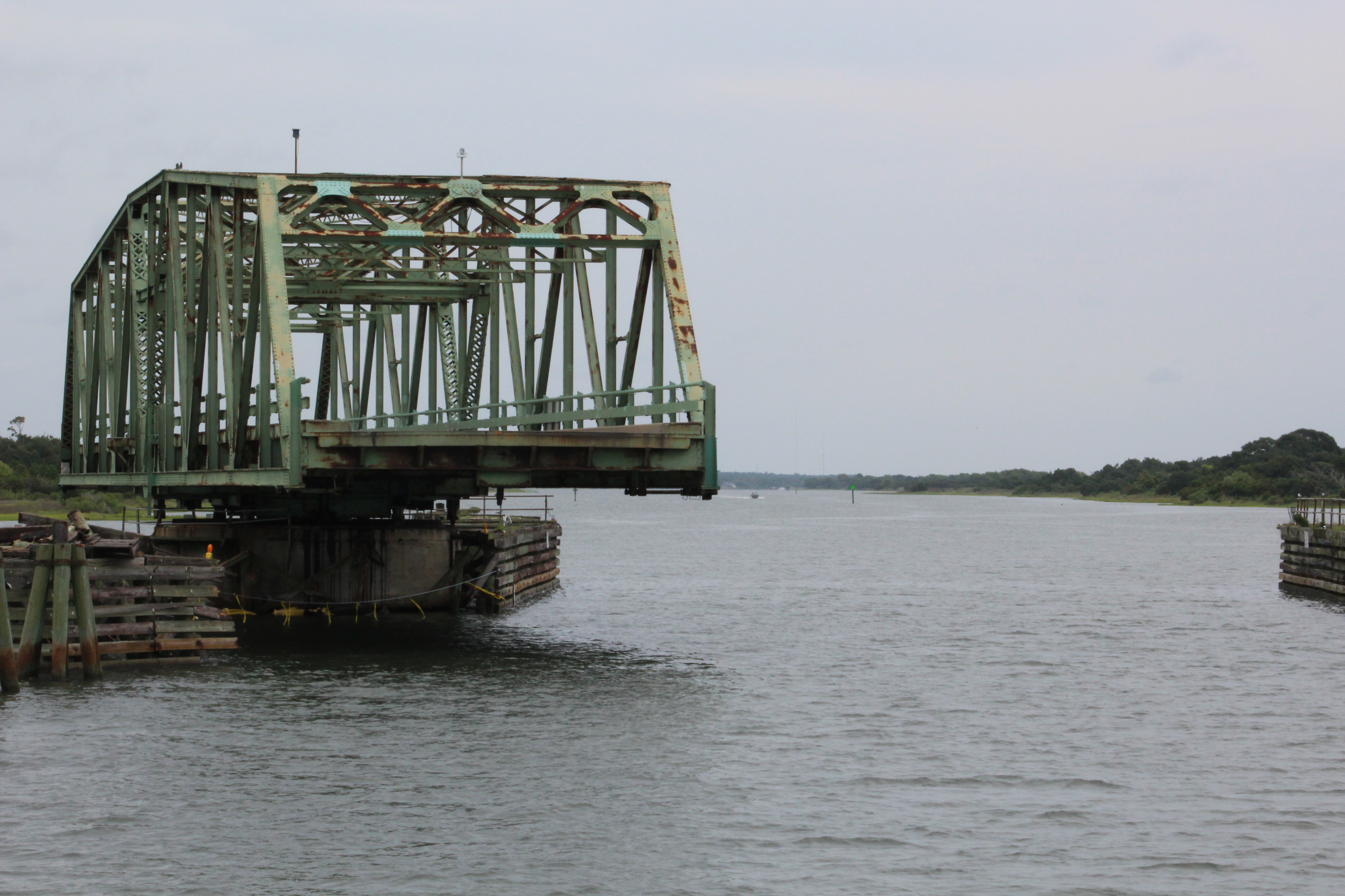 The crew left North Myrtle Beach on Sunday, August 9, at 0919. In less than 5 minutes they were at the Barefoot Landing Bridge and made their way on up the narrow rock pile.