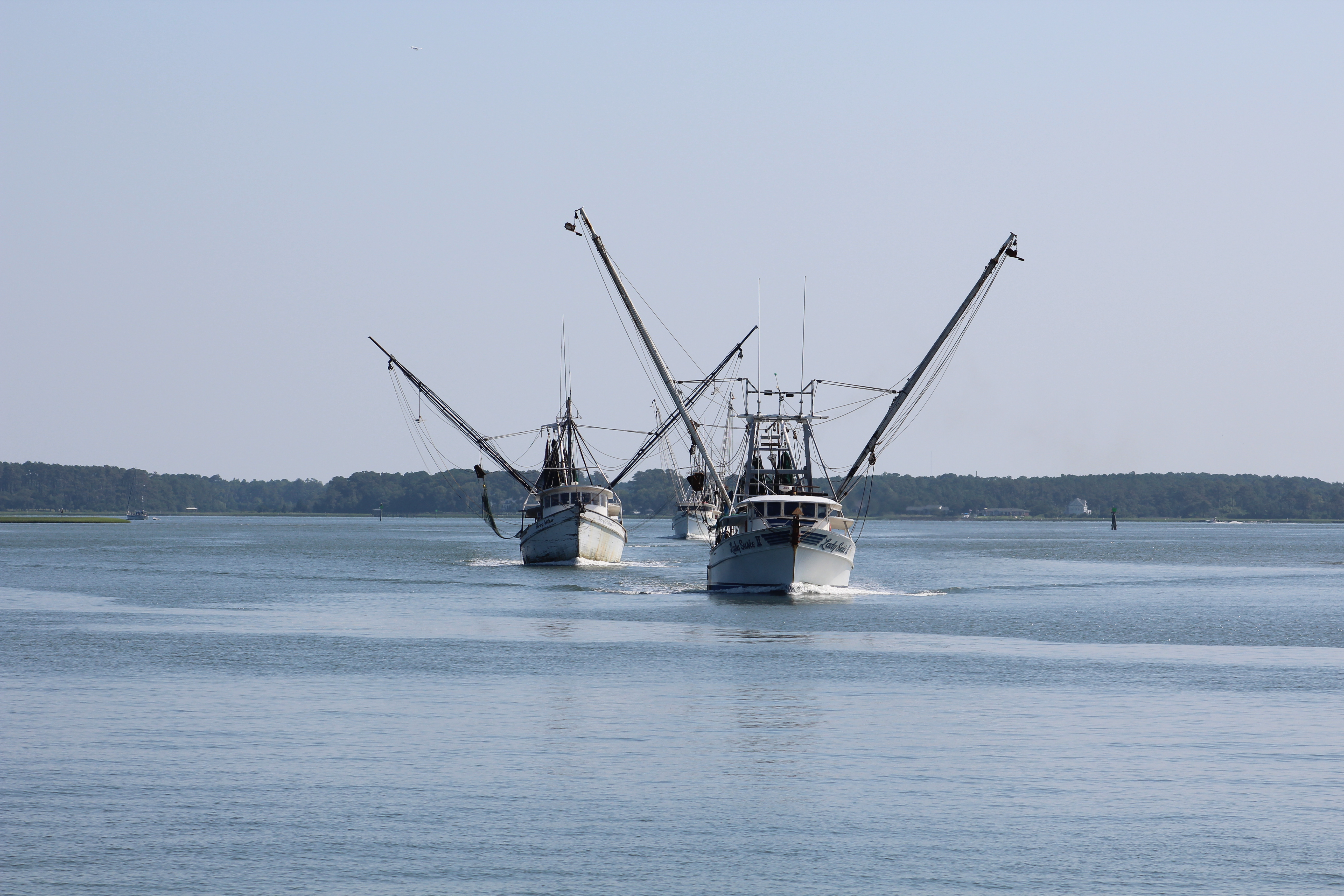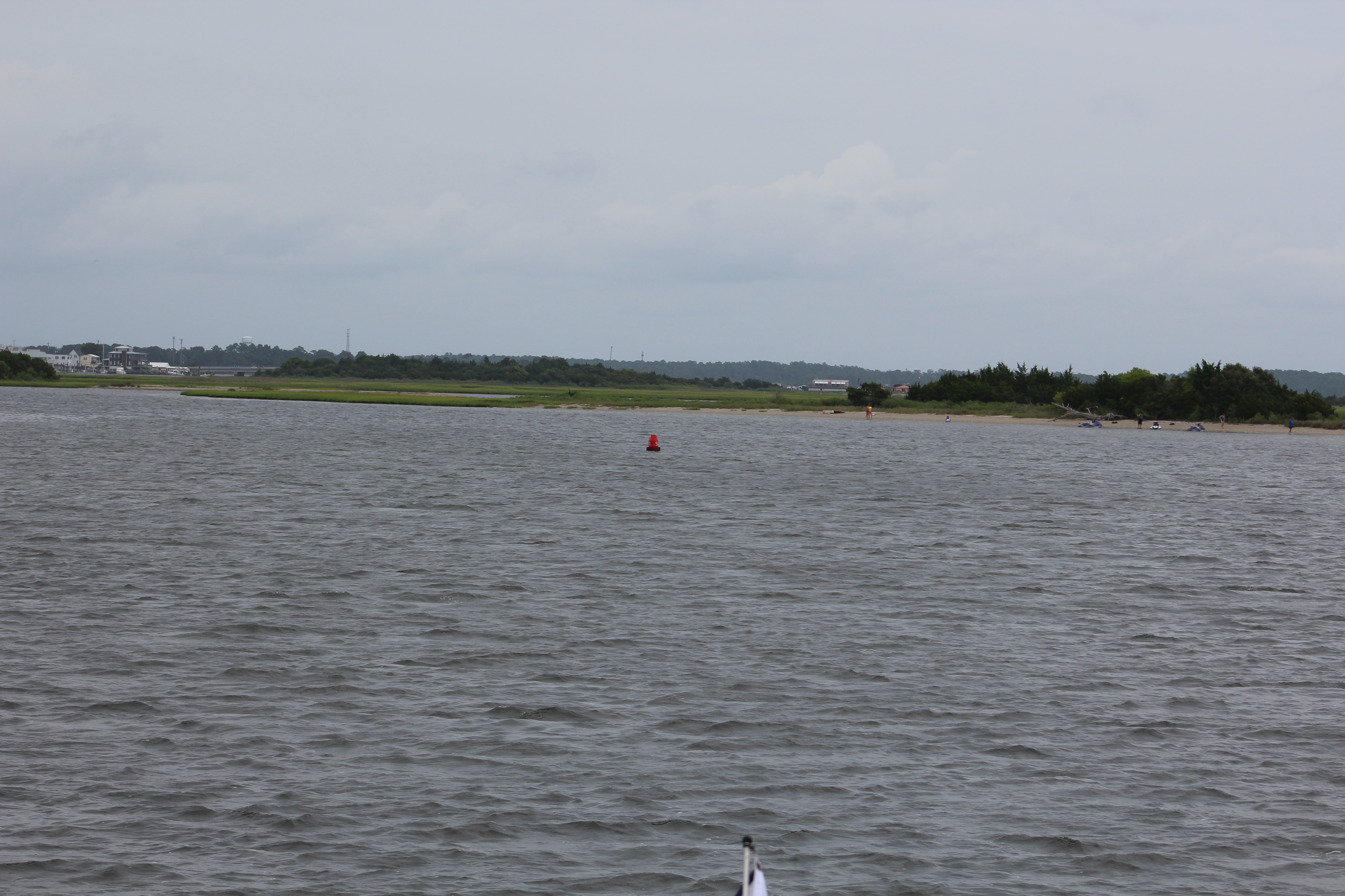 The crew left the dock at 0950 and headed for the Newport River, then Core Creek, and then Adams Creek. While passing through Adams Creek the crew met a south bound boat headed for Matagorda Bay. The boat was brand new, built in Rhode Island, and the captain was taking her to her new home in Texas.