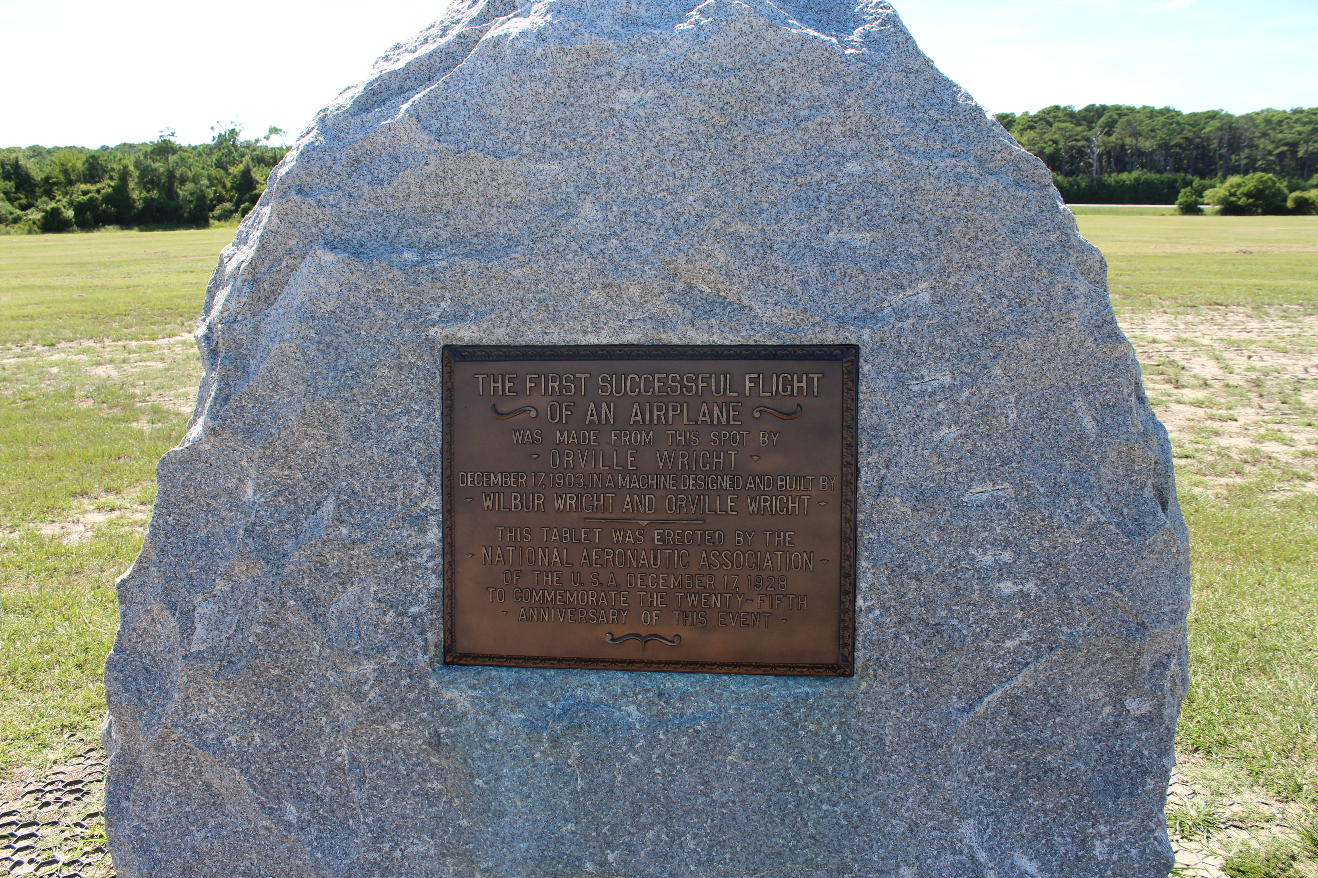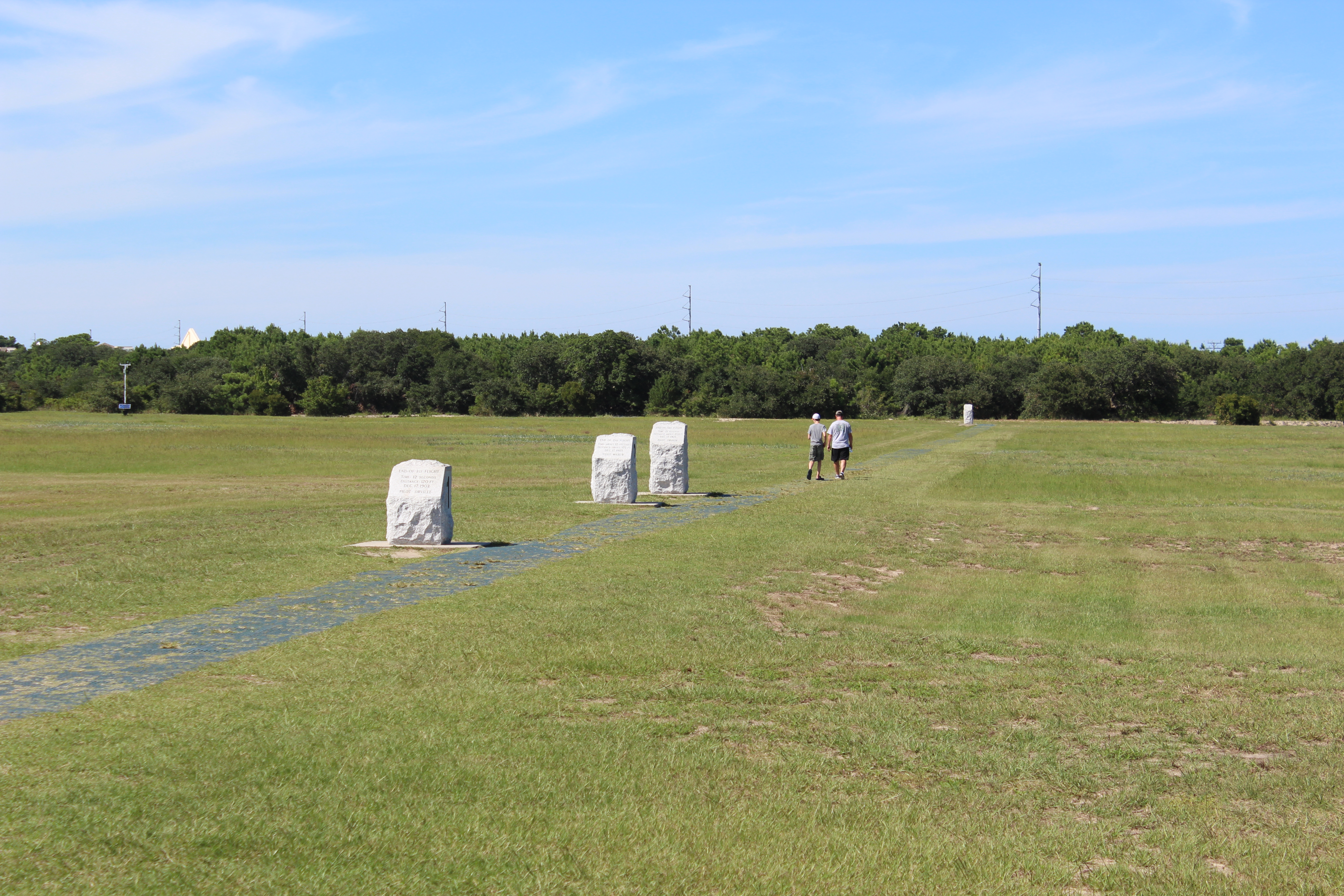There is a large boulder placed where the first powered plane took off. The brothers made 4 flights on December 17, 1903. There is a marker showing the distance of each of the 4 flights.