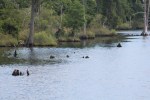 As they exited the canal they entered the Alligator River. The crew was provided their own private air show while cruising the river. Two military jets were performing maneuvers overhead. The jets would fly by, make an arcing u turn, fly into the distance, perform an aerial 360 degree loop and then buzz by Still Waters II at a low altitude. They performed this routine 4-5 times before finally disappearing in the horizon.