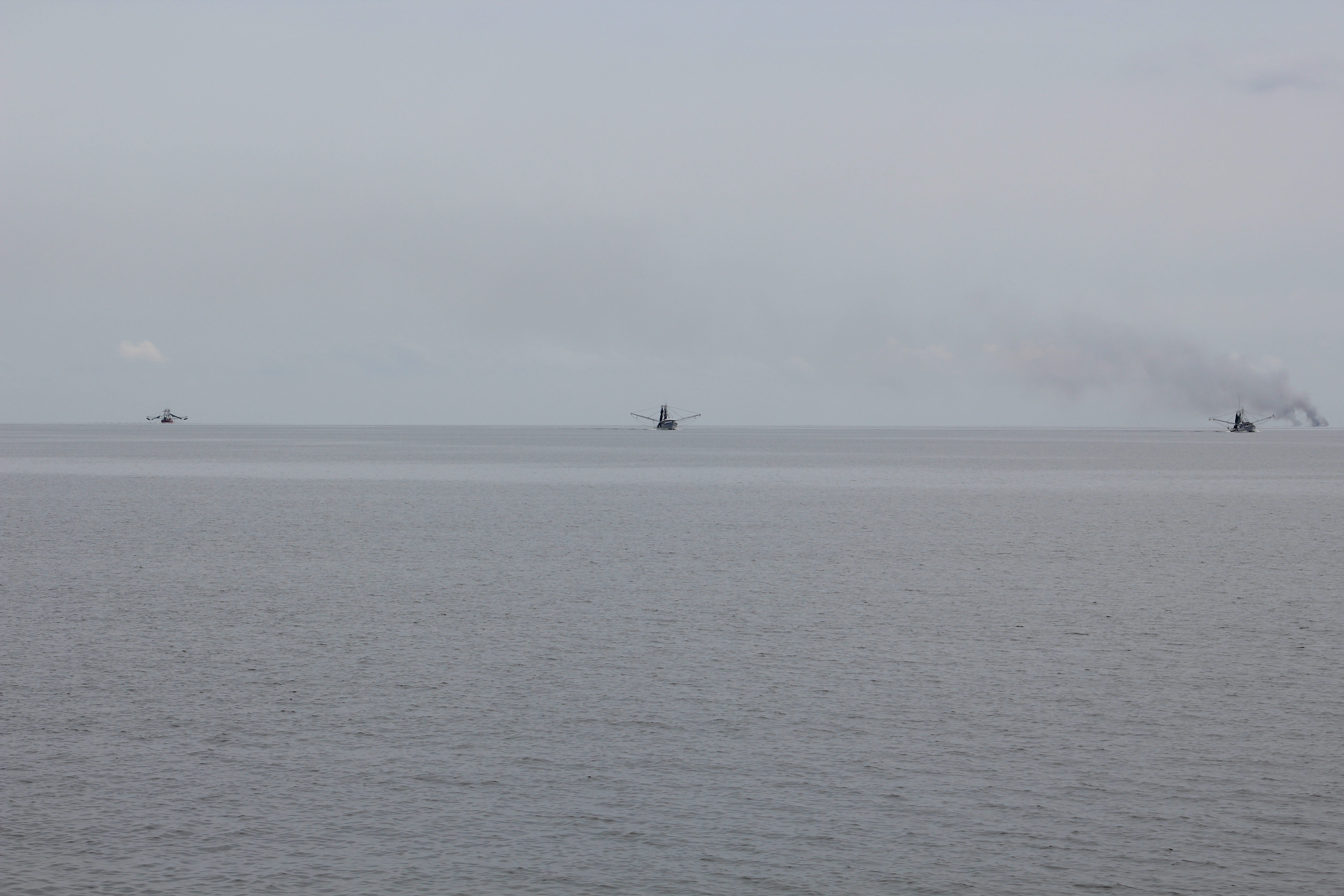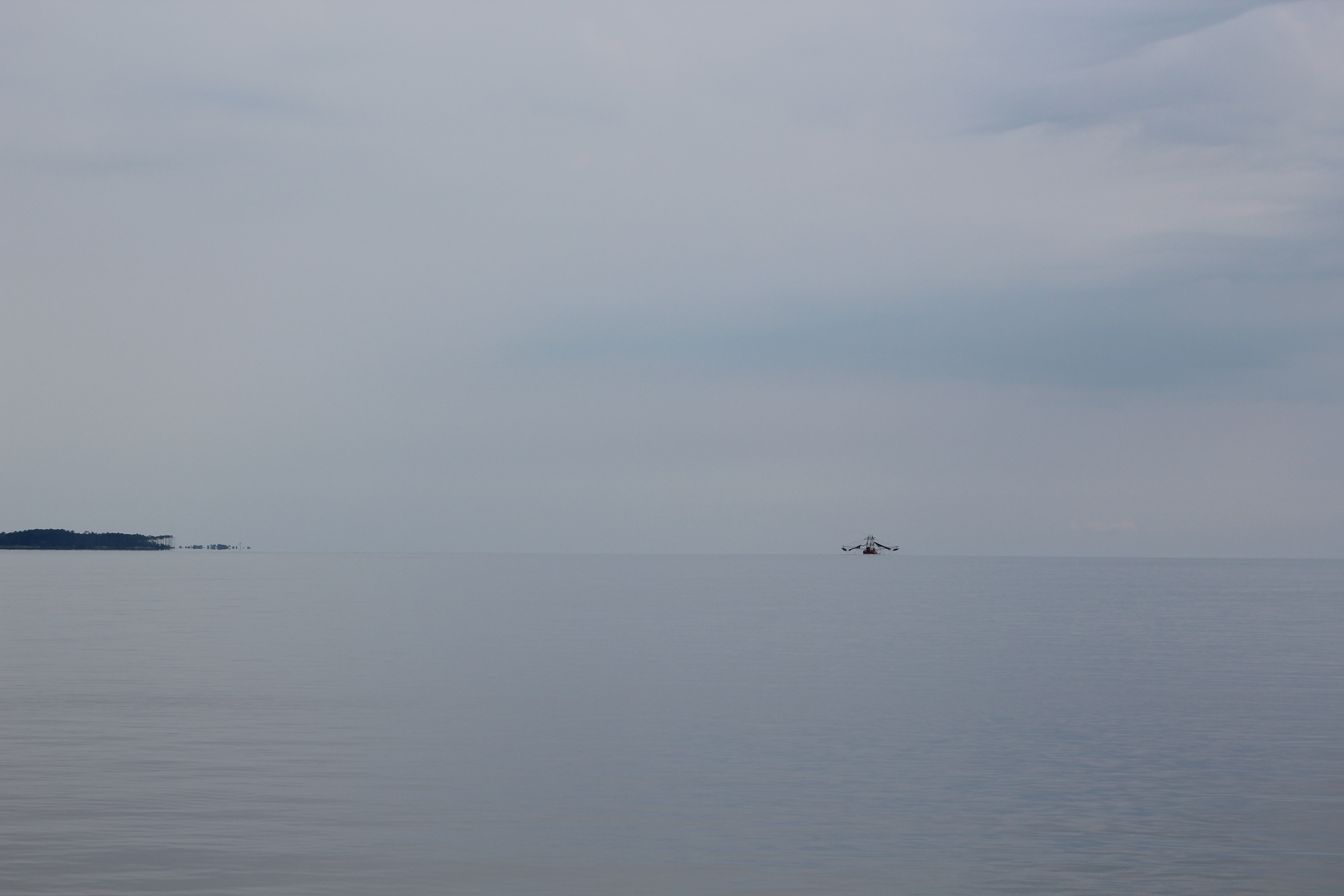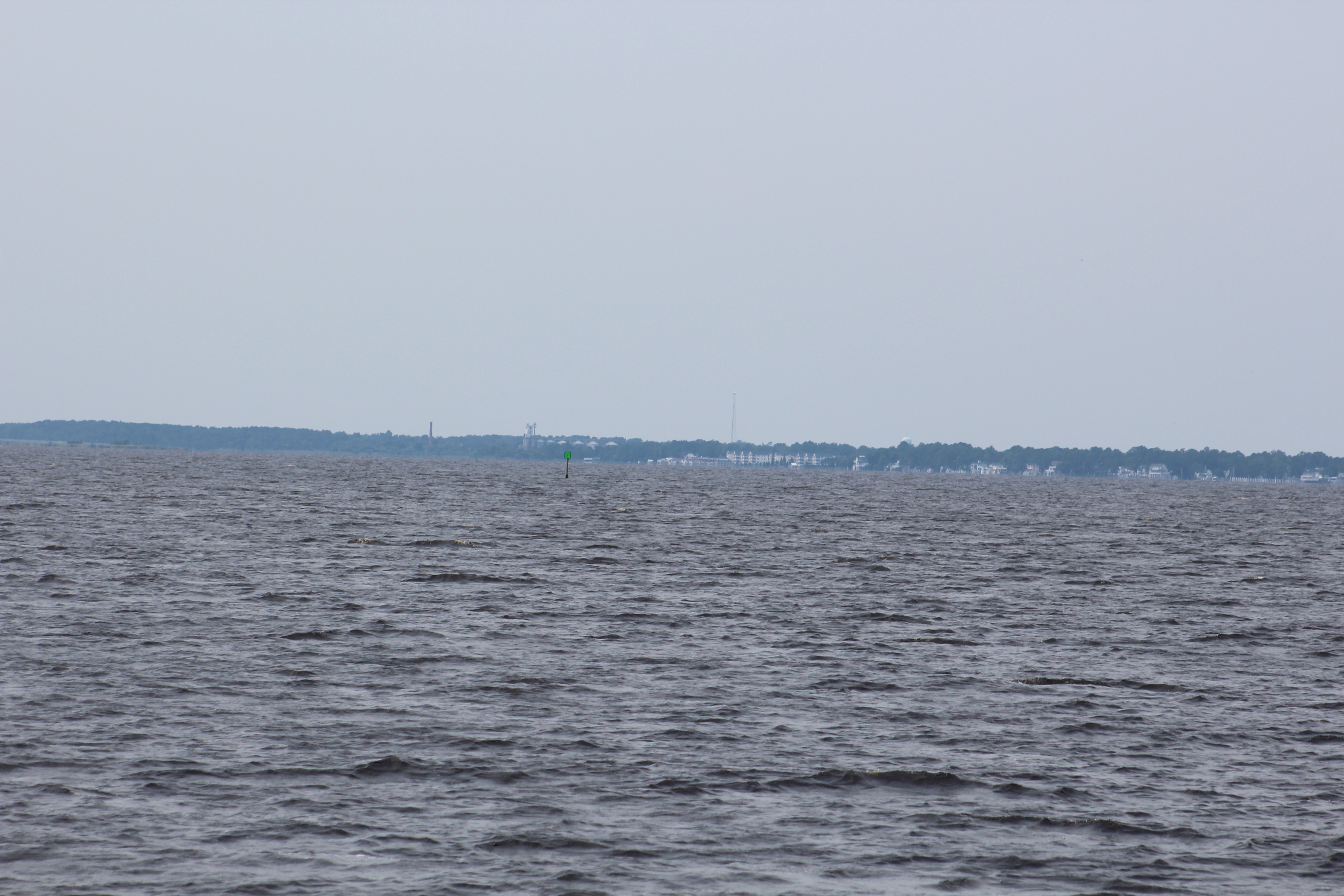 The crew was met with returning shrimp boats once they got out of the harbor. The wind was calm and the large Neuse River looked like glass. They found the Neuse River Junction with ease and made a left hand turn up the Bay River for 5 miles.