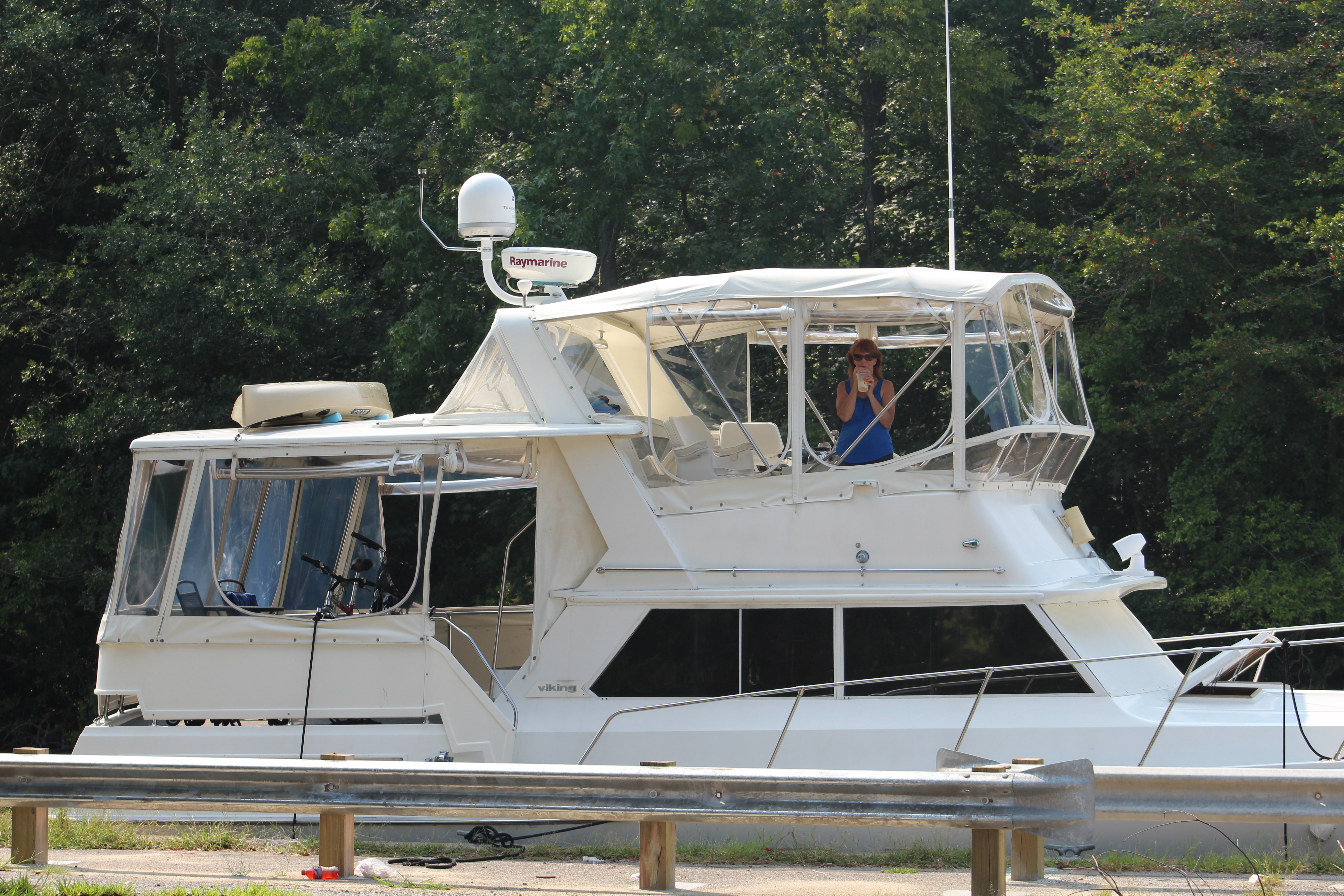 The crew arrived at the Deep Creek Bridge about 40 minutes ahead of schedule. Just south of the bridge on the east bank was a large concrete structure with cleats attached. So what do you do when you need to wait 40 minutes for the bridge to open?