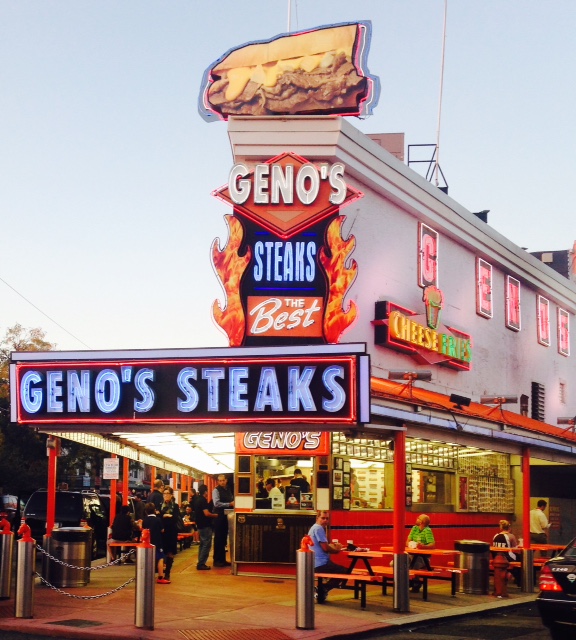 Geno’s has been in business since the 1930’s and has a huge following in Philly. There is a whole subculture on ordering your cheese steak and paying. If it is rush hour and a long line, and you do not order correctly, you are sent back to the end of the line rather than hold up the serving line.
