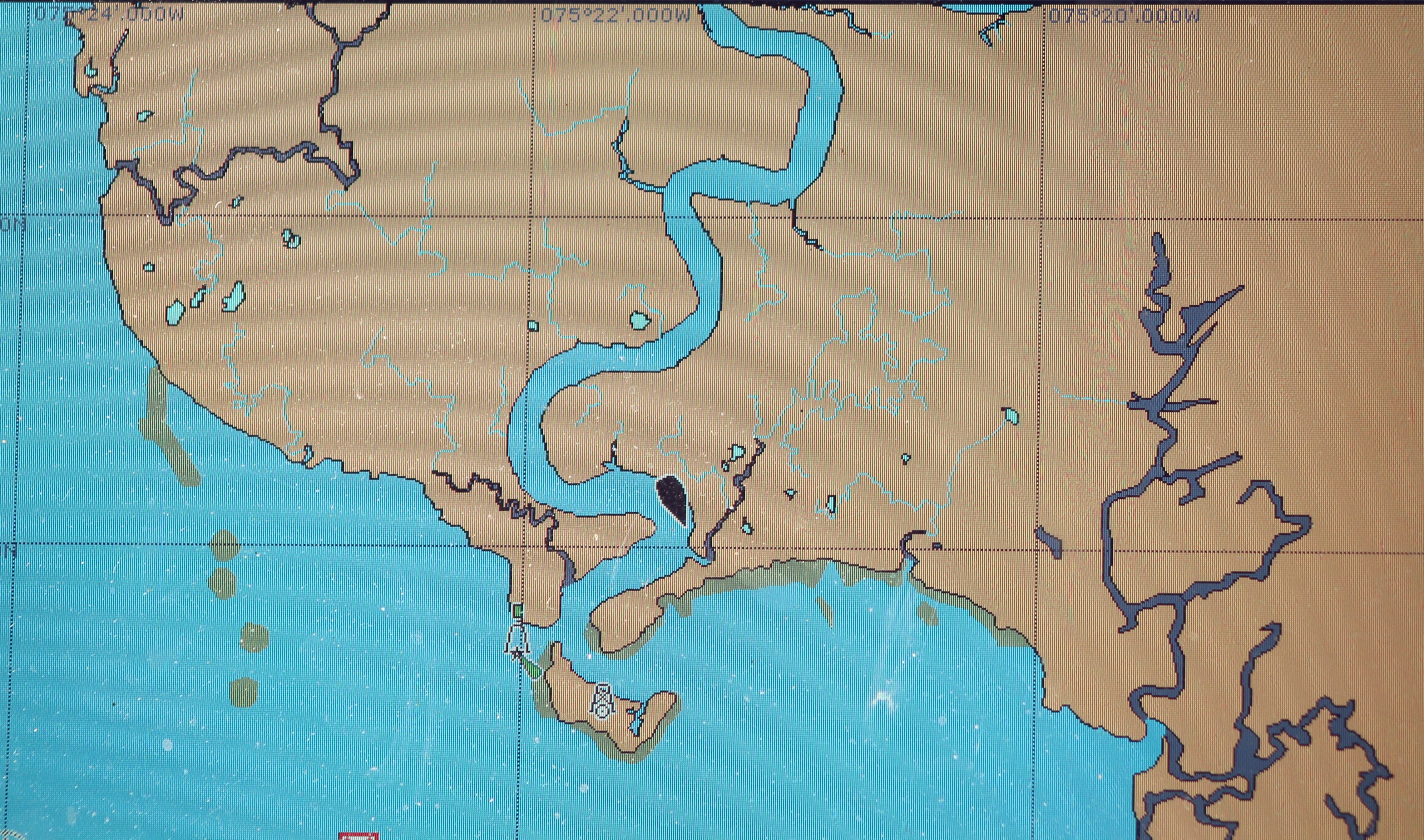 Unfortunately they were not making good speed due to the ebb current and did not arrive at the mouth of the Salem River until 1900. The markers guiding the entrance up the river were flashing green and red so navigating the way in was not bad in the dark. However, at the last flashing green marker the crew still needed to go about a half mile in the dark and make a left turn. It was pitch black and hard to see. When the river “Y’d” and the crew needed to go left the houses lining the banks reflected enough light on the water that it became easy to see where to go again. By 1939 Still Waters II was safely anchored and the crew was ready for rest from a long day.