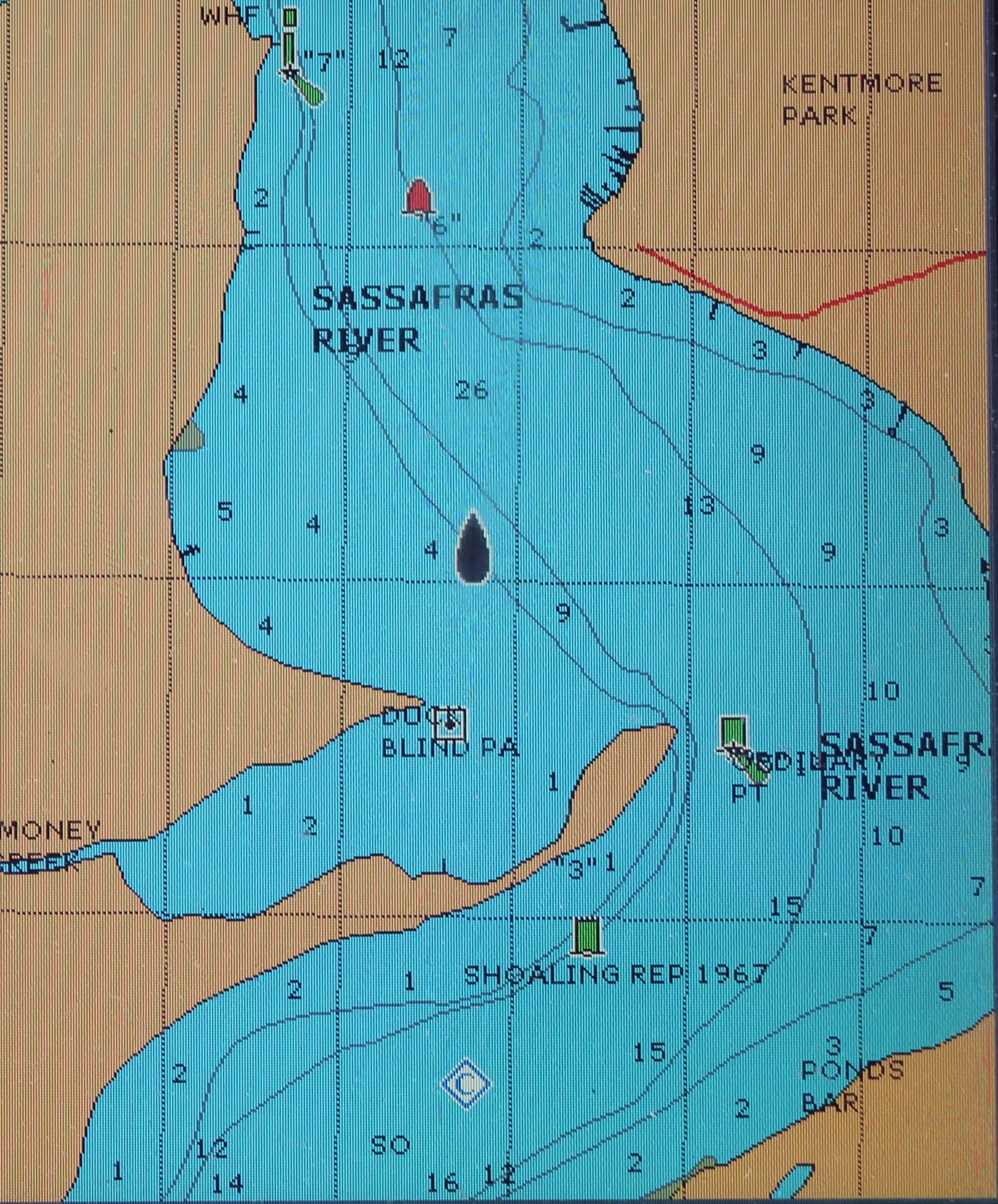 After leaving the C&D Canal the crew re-entered Back Creek, then the Elk River, and then back into the northern part of Chesapeake Bay. The crew took a turn off of the Bay and headed up the Sassafras River to find a place to anchor and bring a close to this 48 mile run.