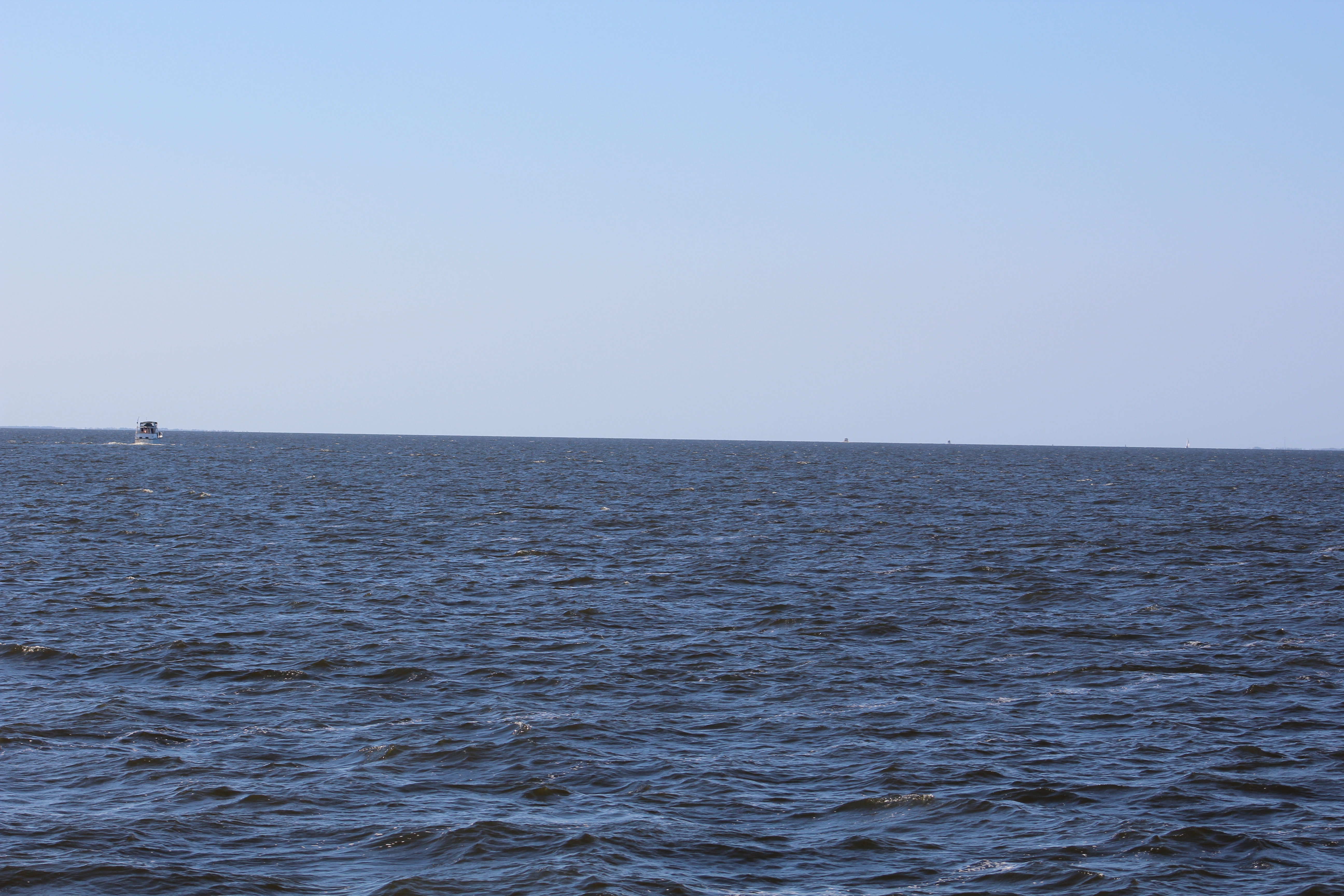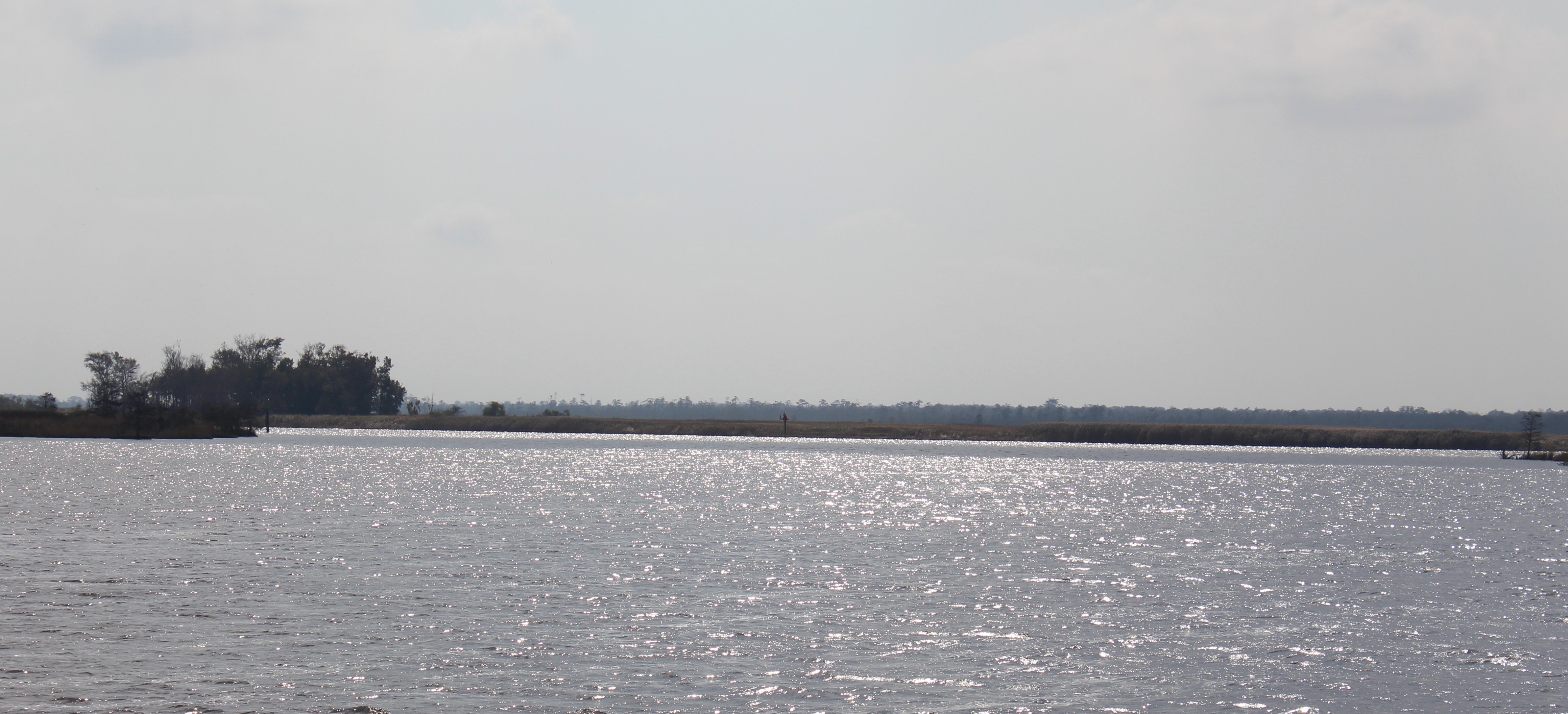 The crew logged a 70 mile voyage and crossed the Albemarle Sound. The plan was to get across the Sound in the morning before the winds got up and caused the big waves that the Albemarle is famous for. The Sound is also known for ‘confused seas’ which means waves from all directions. The Sound did not disappoint. The wind was out of the north/northeast at 15 mph with gusts to 20. This made for 3-5 foot waves coming from all quarters and a bit of a rough ride across. However, the skipper is getting better at finding the right speed to cruise the rougher water to make for a smoother ride. He has been getting more practice than he wished for, but hey, practice makes perfect.
