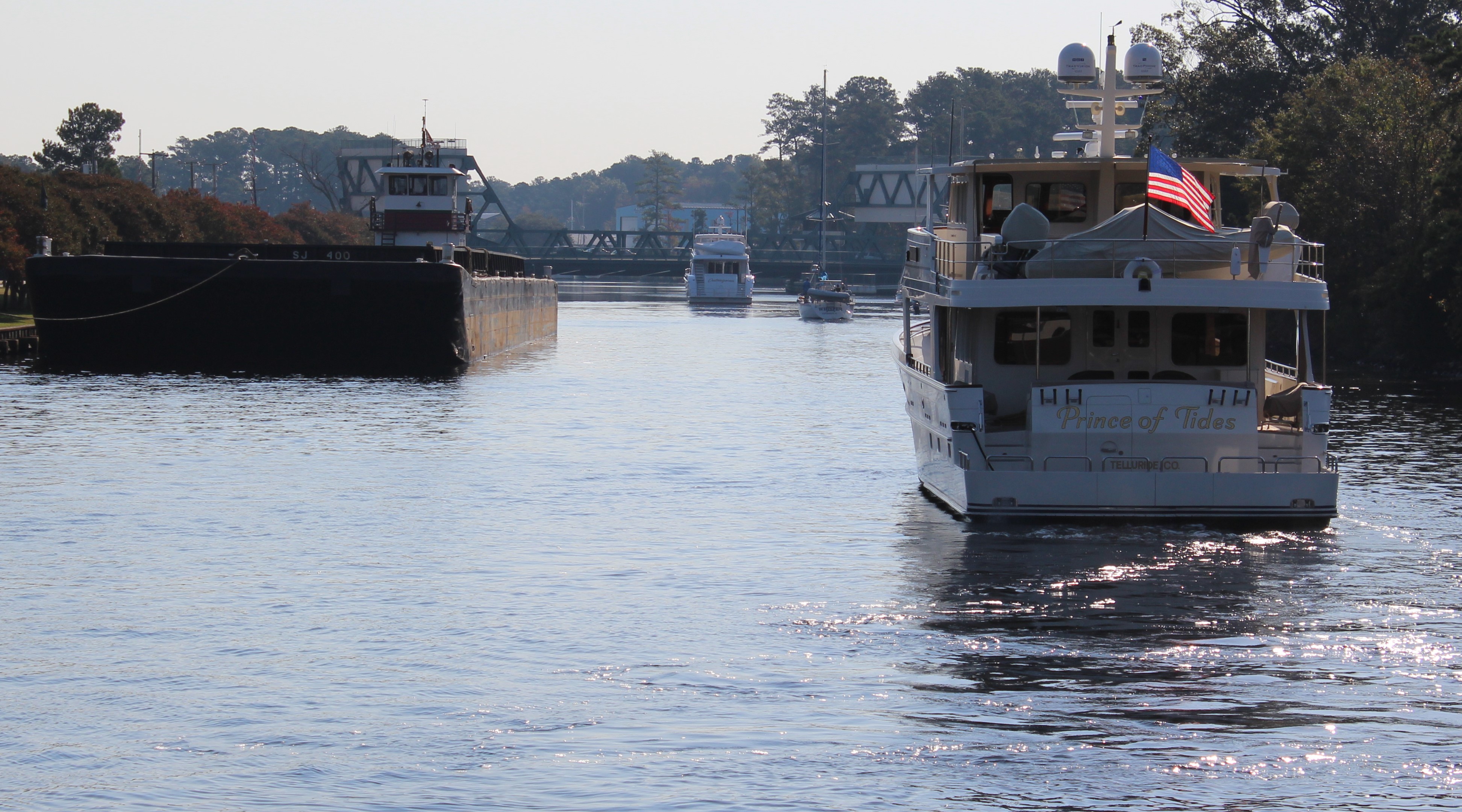 Next was the Centerville Turnpike Swing Bridge three miles south which opens on the hour and half hour. The five boats stayed in order and all made the 1030 opening.