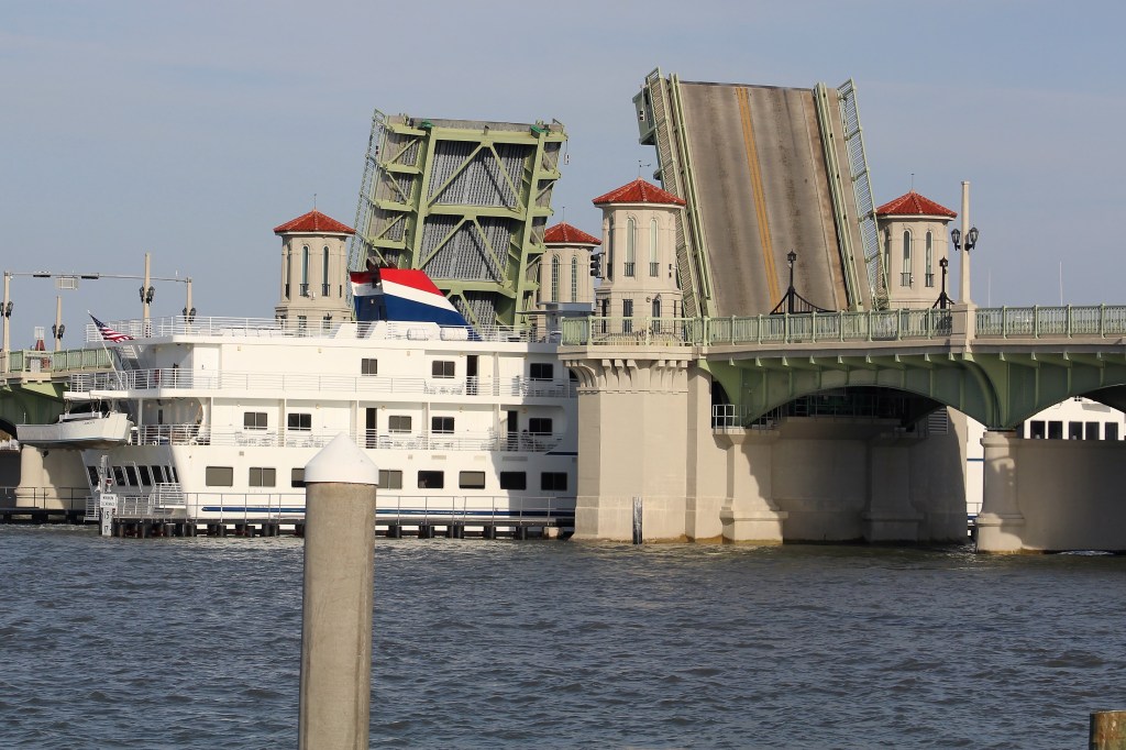 Cruise Ship about to pass thru the Bridge of Lions in St Augustine