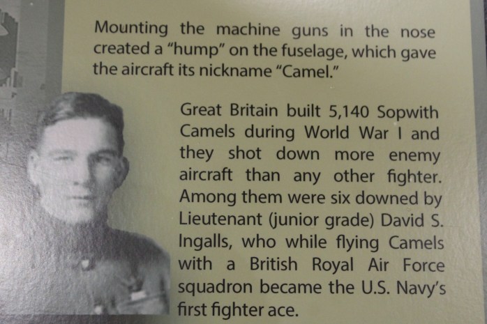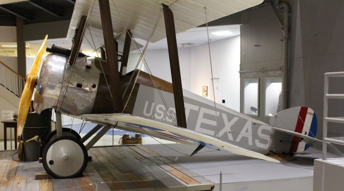 The tour took them to an interesting little plane named USS Texas. The plane was a Sopwith Camel and was used in WWI. In fact, a Lieutenant (junior grade) flew one of these planes to become the Navy’s first ever Ace. You may recognize that this is also the plane that Snoopy flies in the Peanuts cartoons.