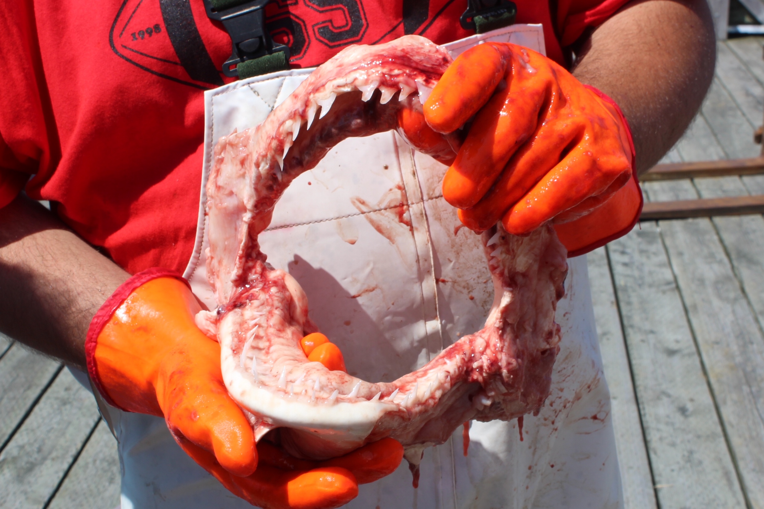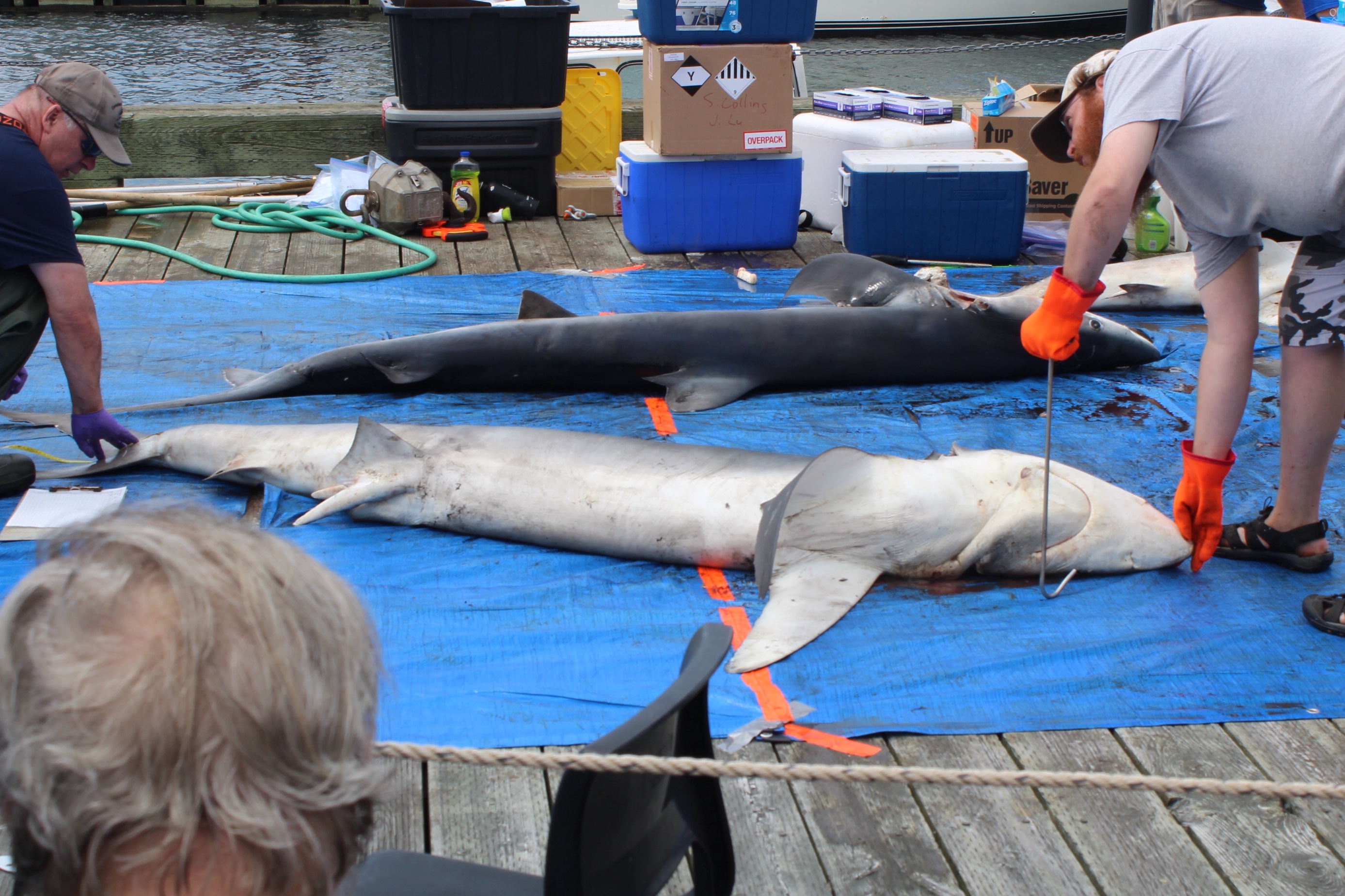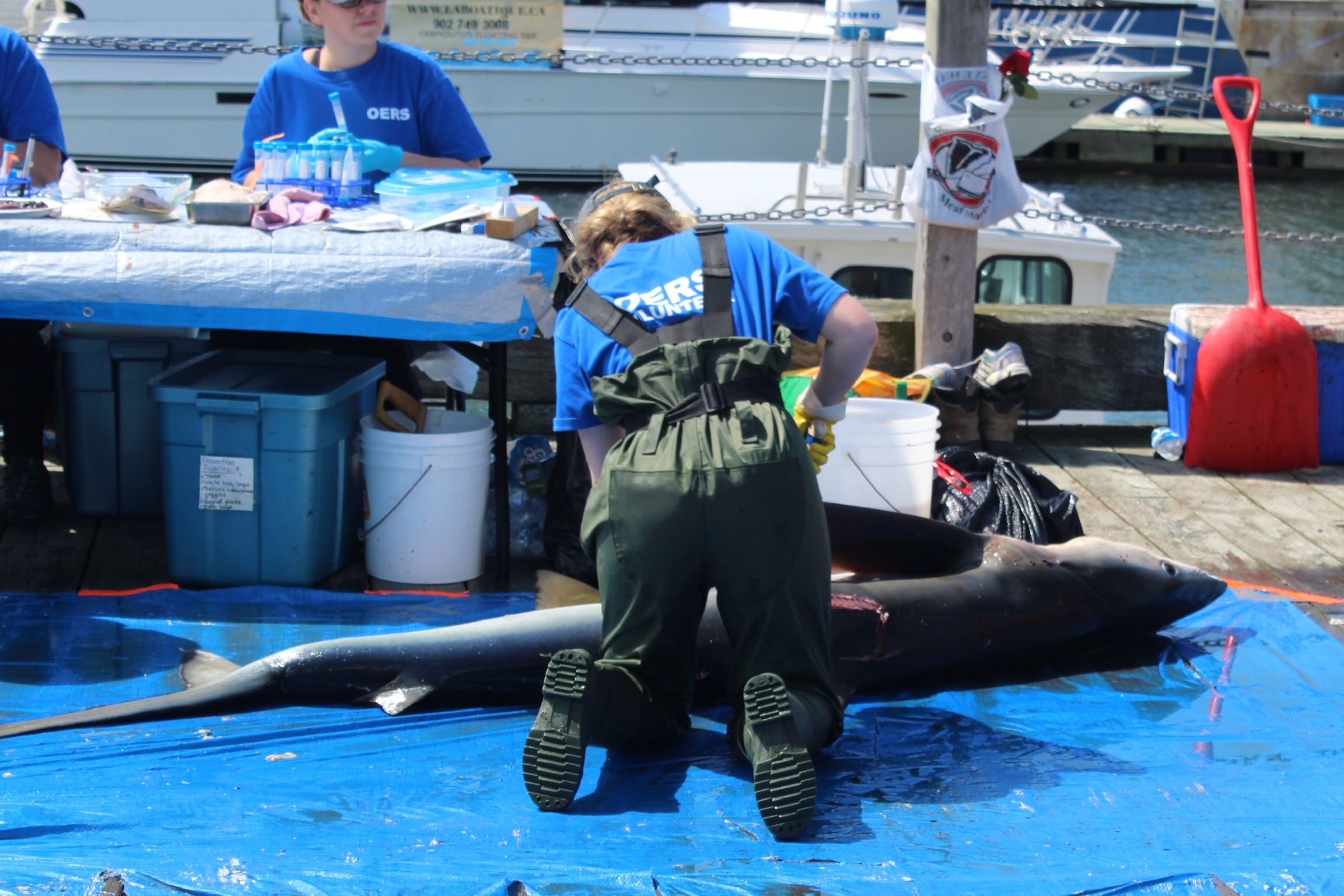 There were many volunteers making the shark weigh in a success. There were the folks actually weighing and measuring the sharks. Science organizations who were taking samples of the sharks for future studies. People carving the sharks up, others putting the cut pieces in big vats, and others shoveling ice to keep the meat cool.