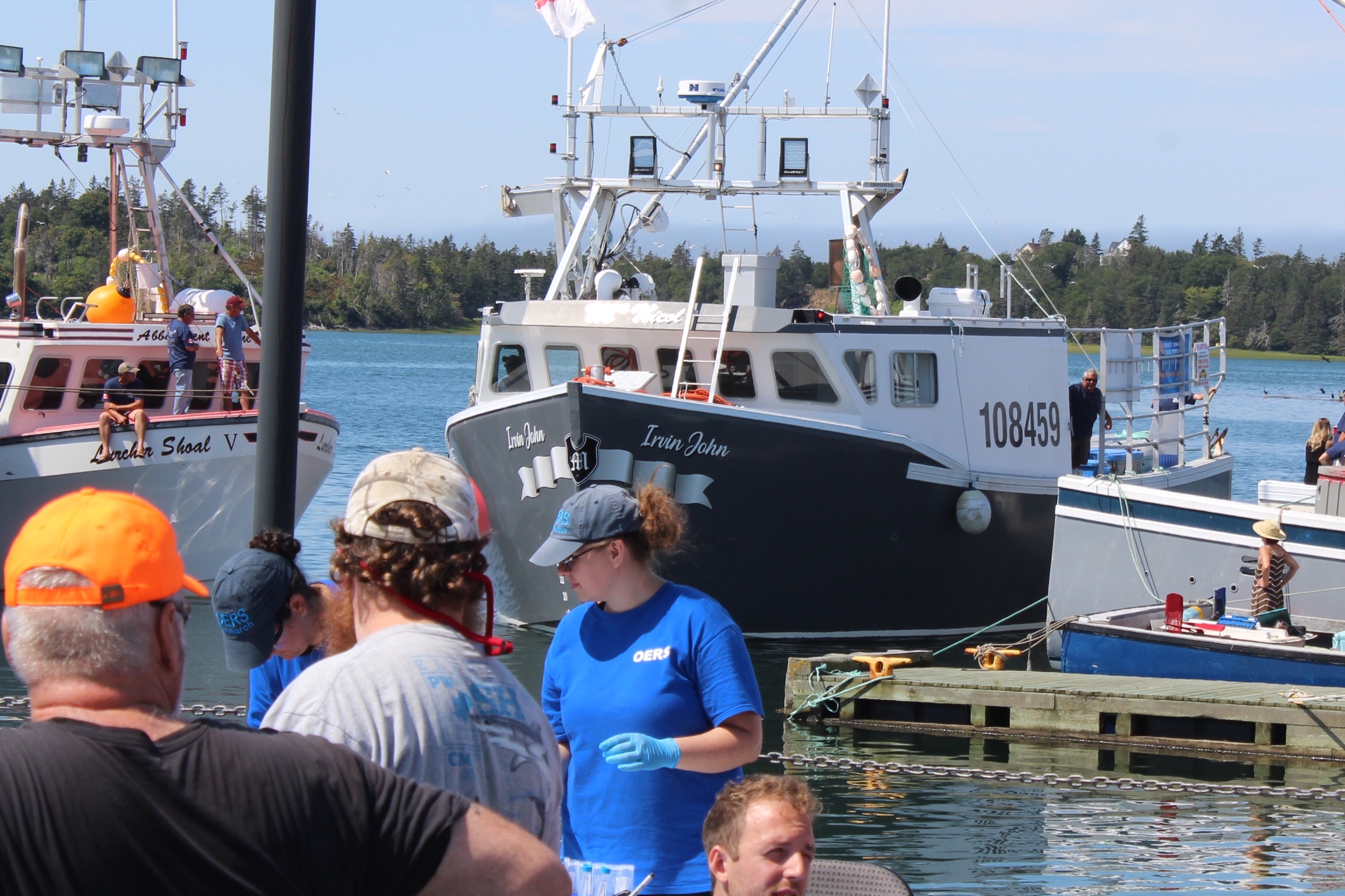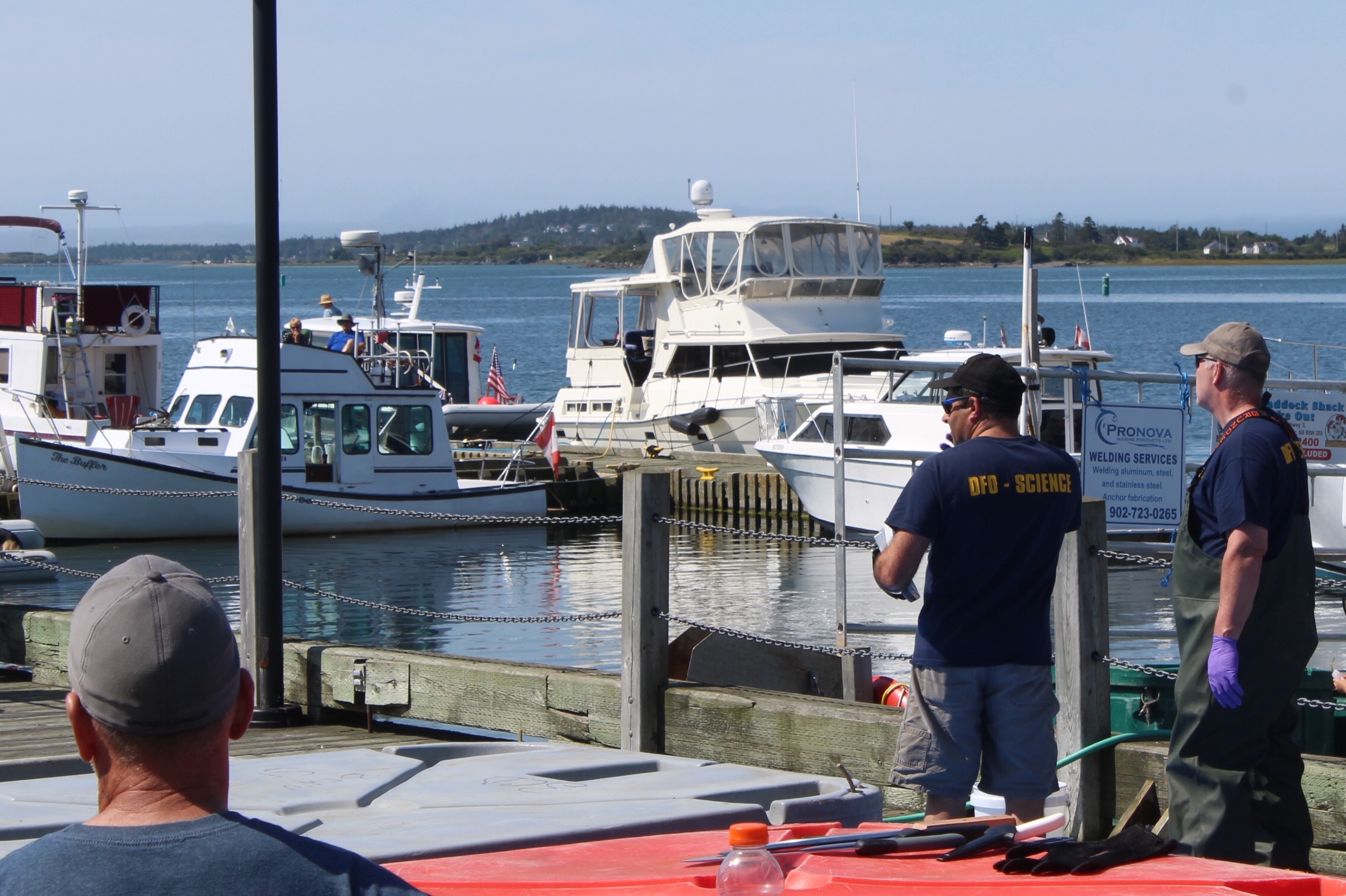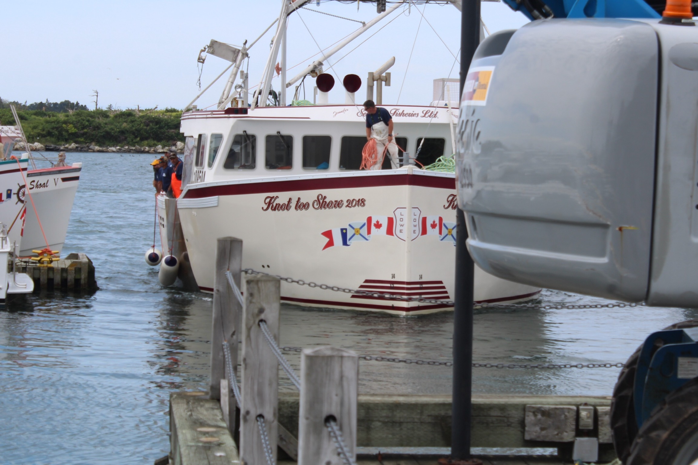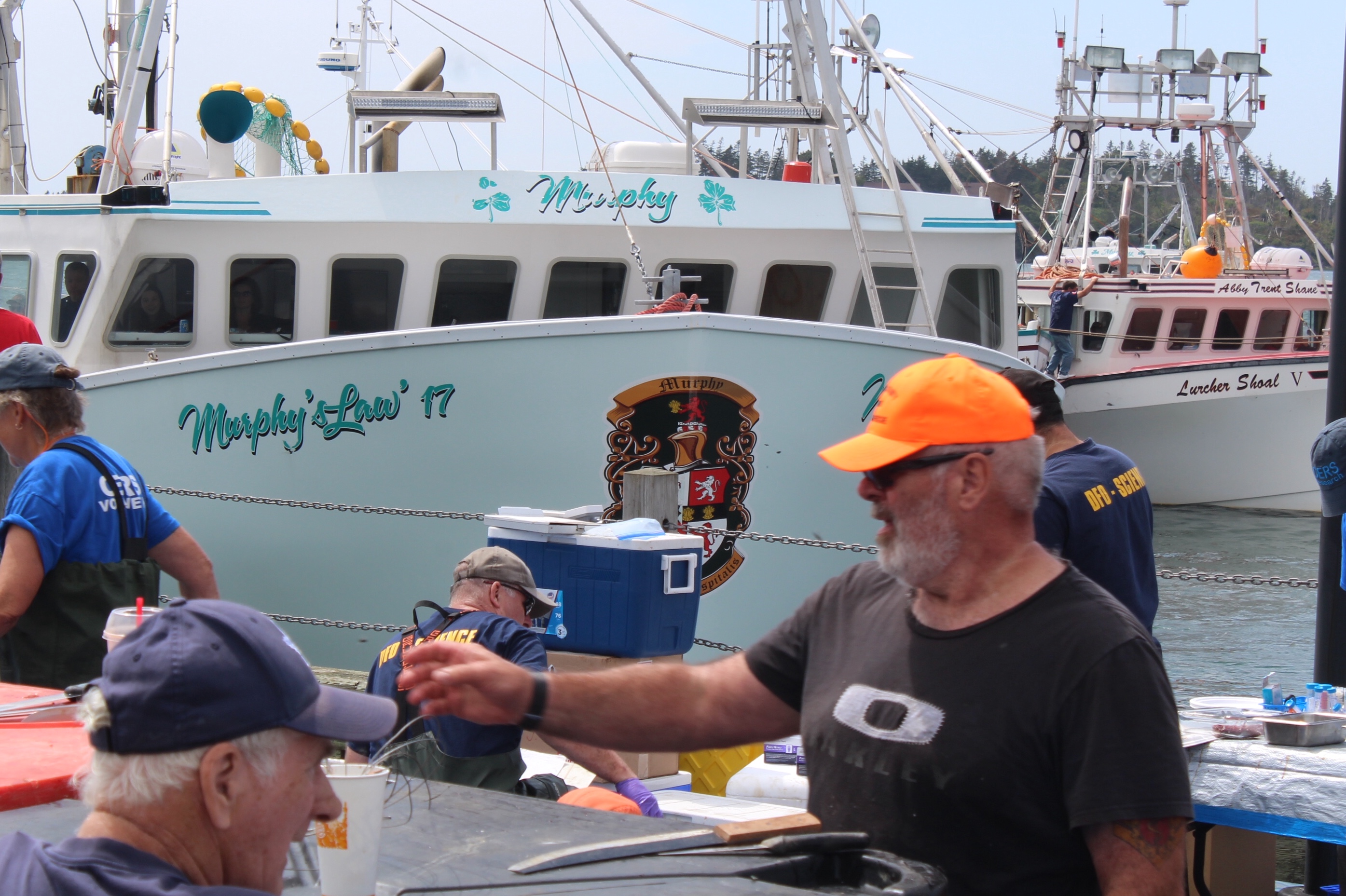 At noon it was time to drift over to the next wharf and watch the weigh in for the Yarmouth Shark Scramble. This was the 21st Blue Shark Tournament. There were 15 boats registered who had 5-7 people onboard who were fishing for shark. Each boat could weigh in three sharks.