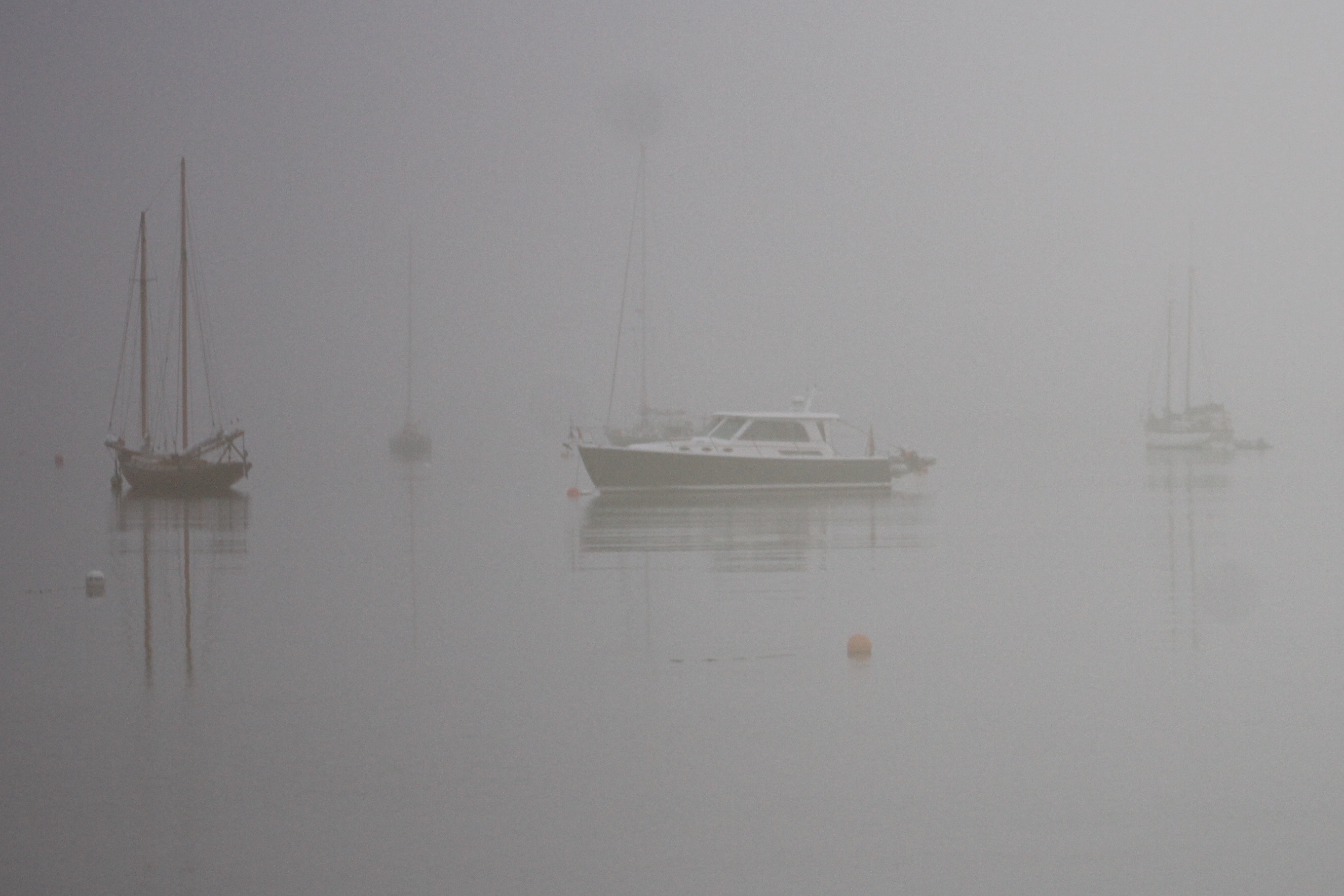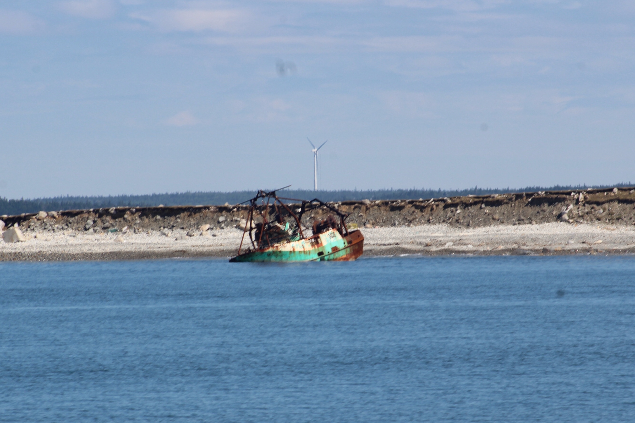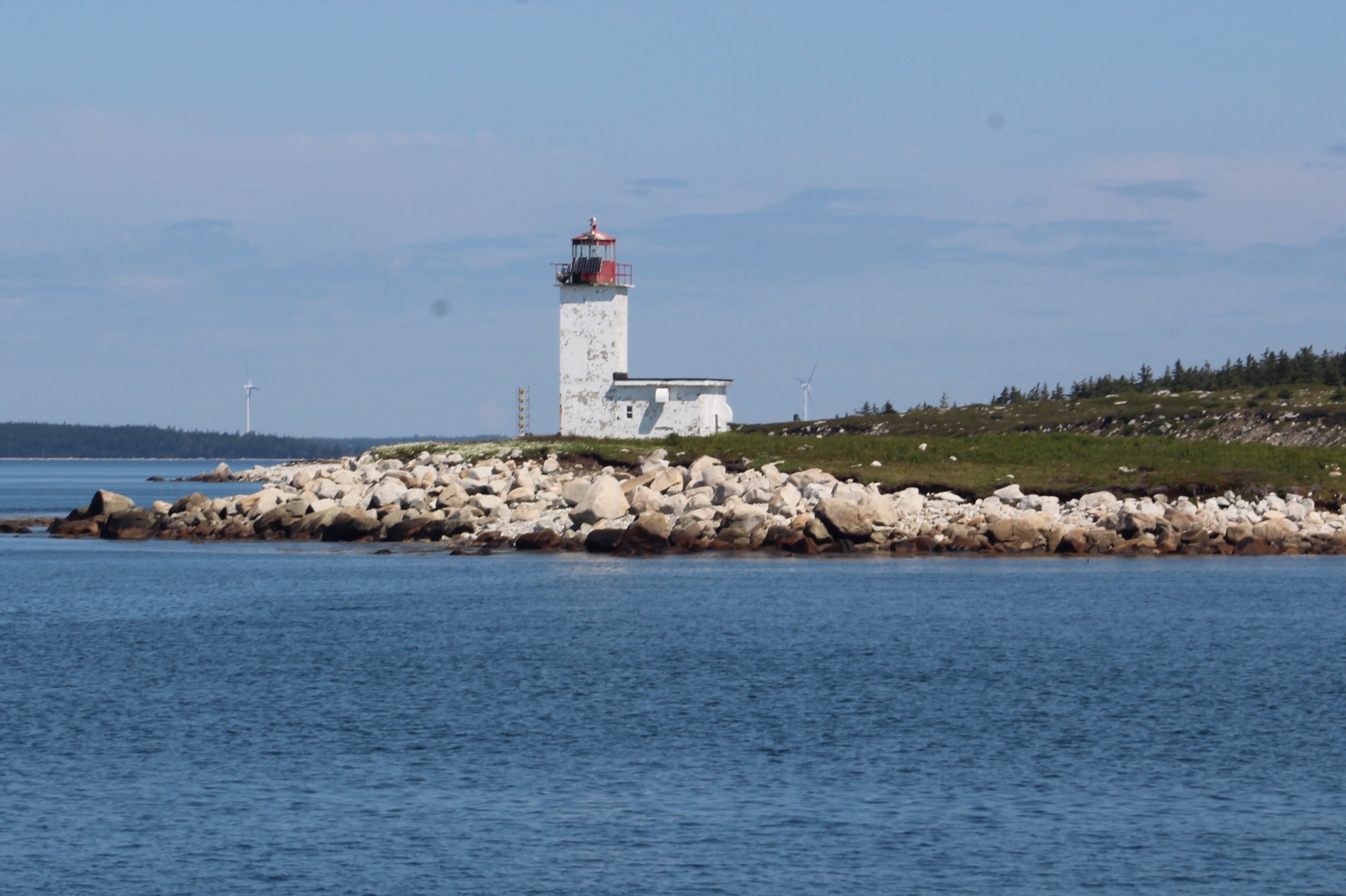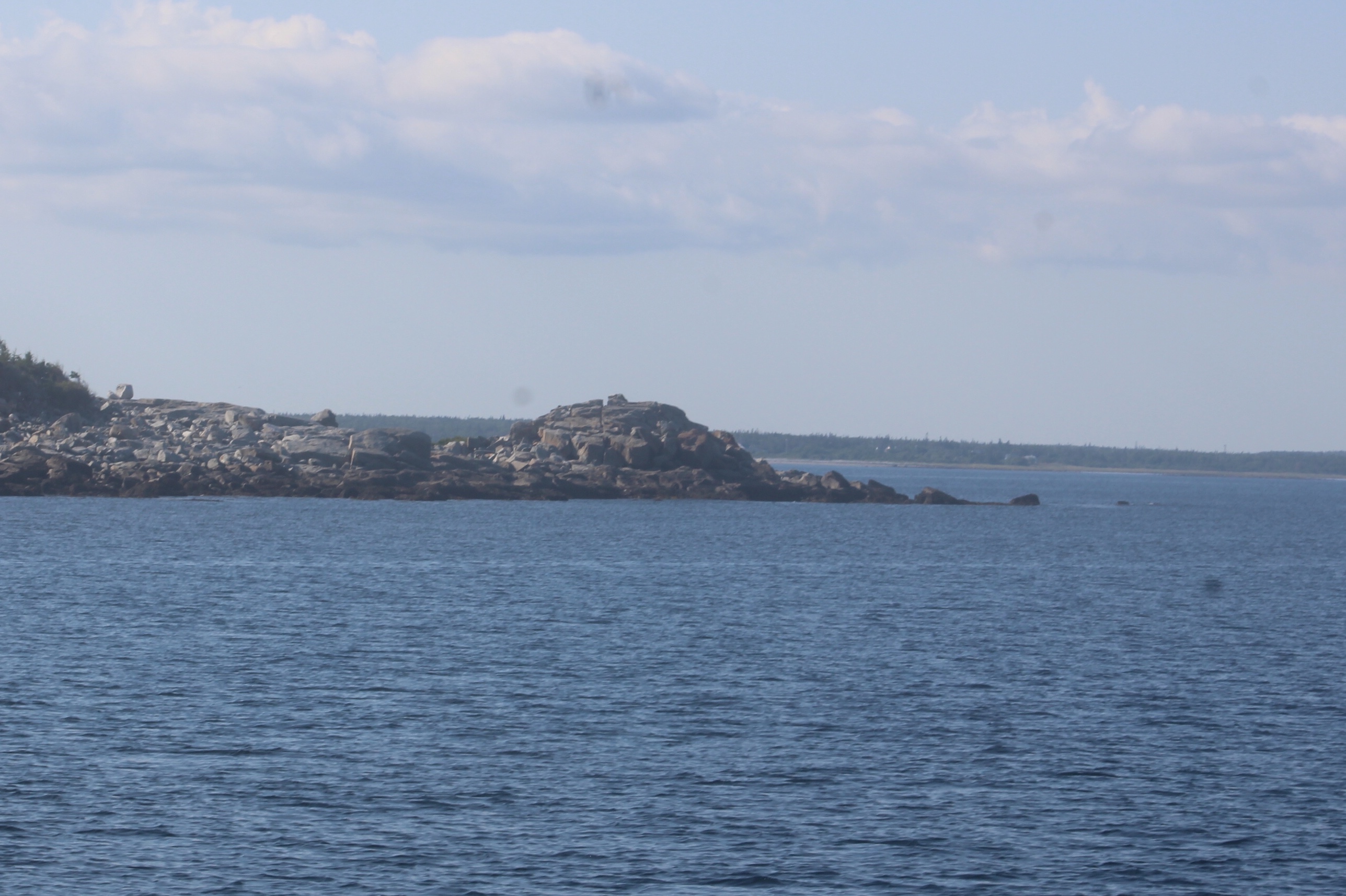 When the crew rounded Cape Sable Island, the most southern point of Nova Scotia, the fog was so thick that they could not see the land or the lighthouse. The fog lifted before they arrived at the Tusket Islands though, so the skipper weaved thru the islands to check them out.