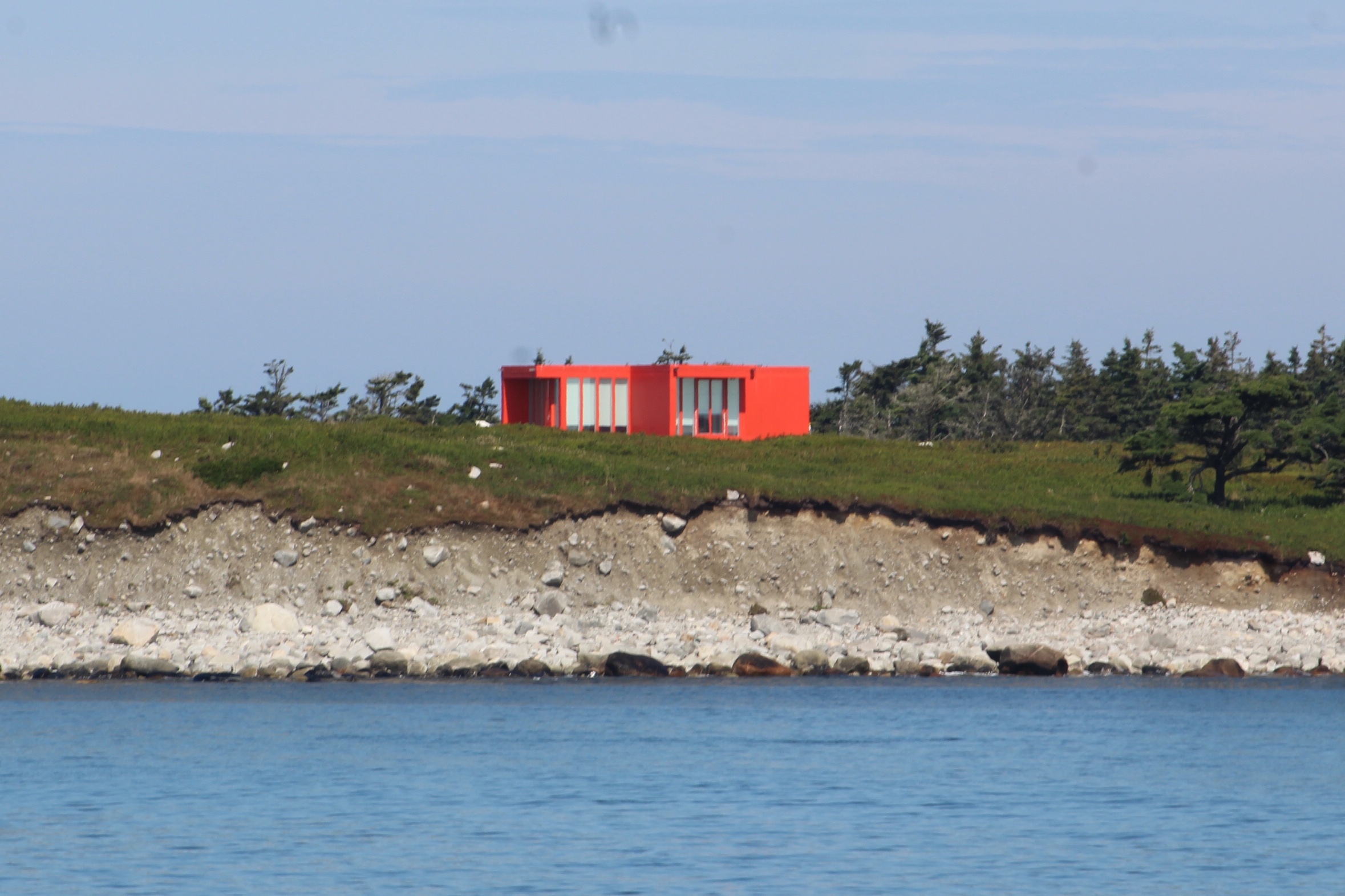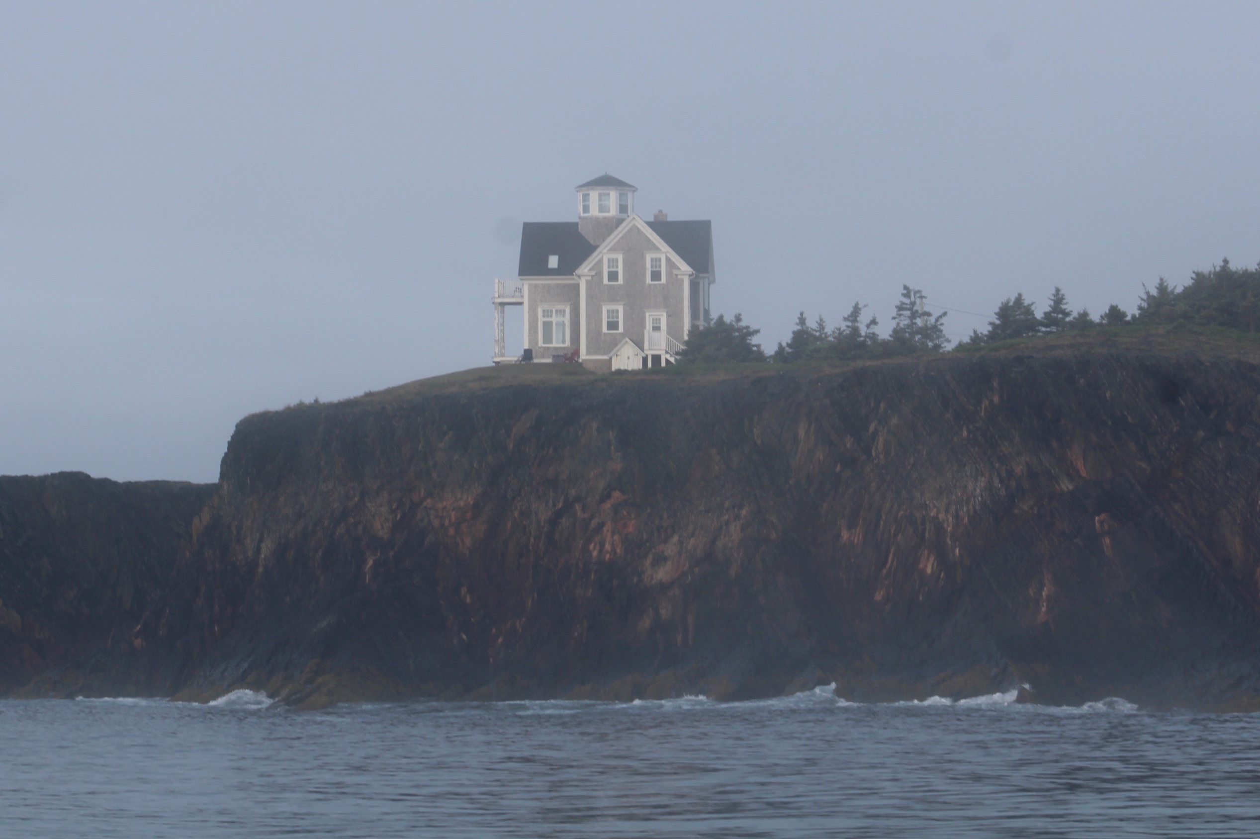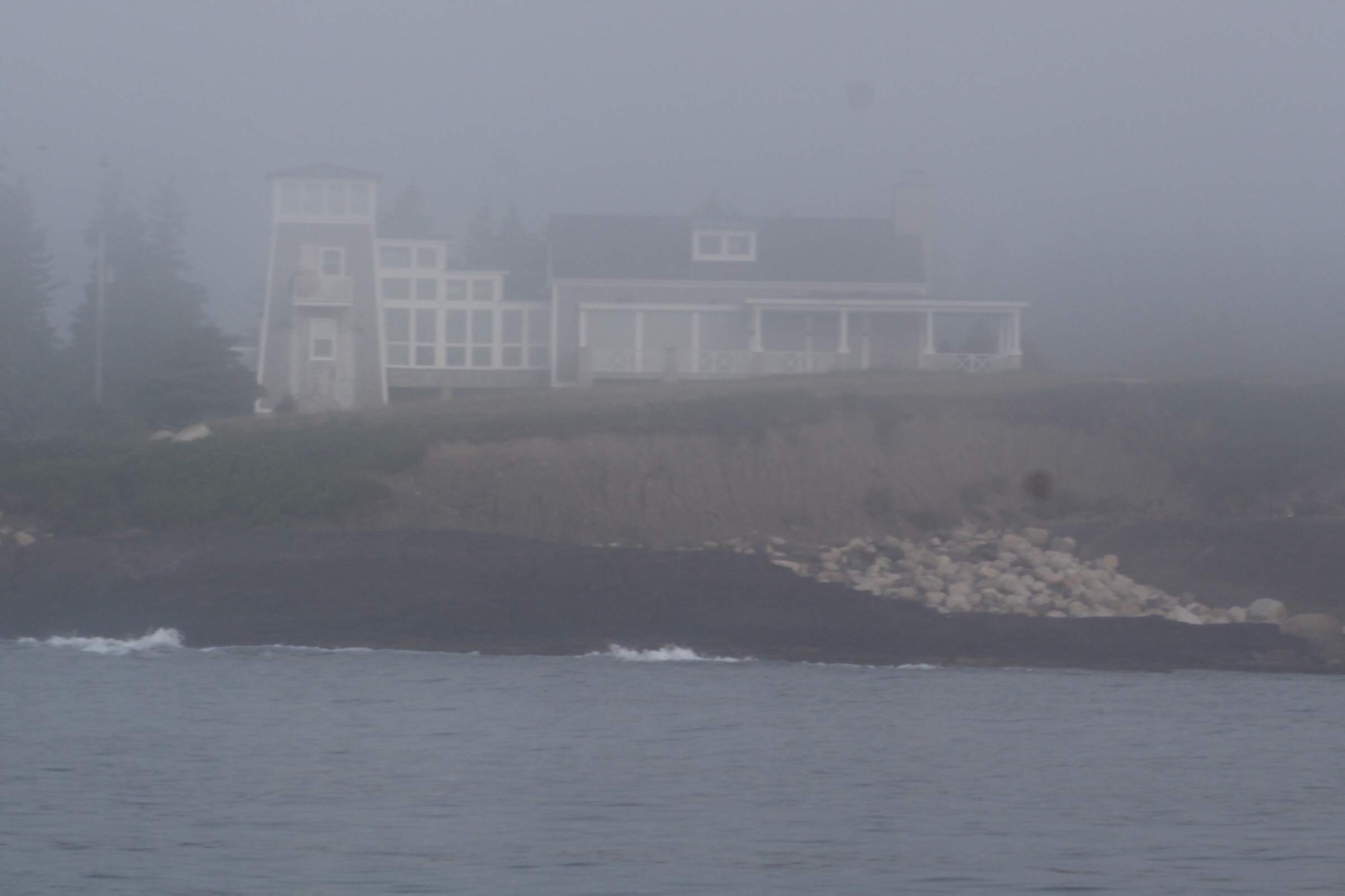 The fog seemed to come and go most of the day. The skipper was able to snap a few pics along the way though. These houses were on a point as the fog lightened long enough to get a view.
