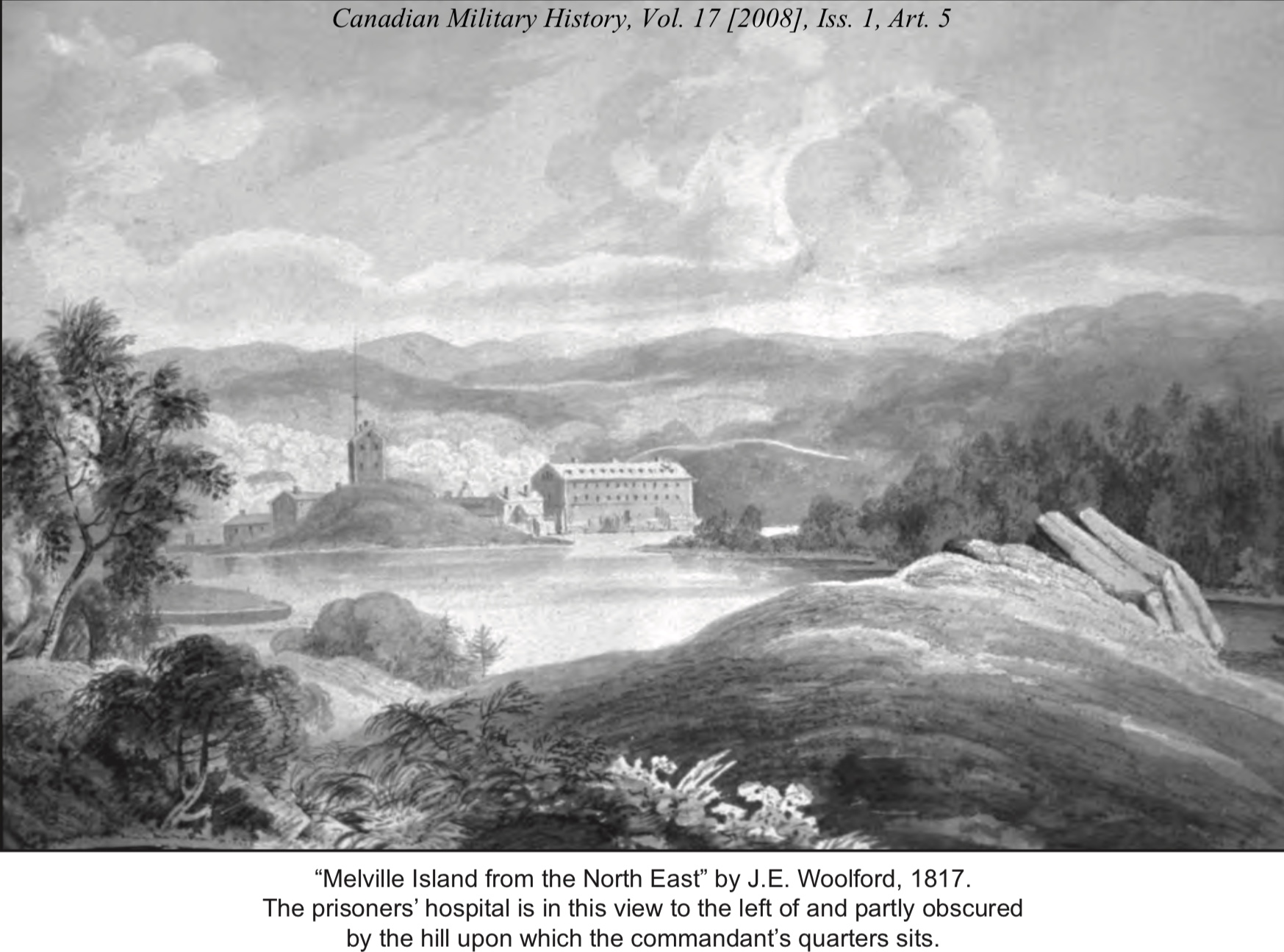 The USS Chesapeake was defeated in battle by the HMS Shannon in 1813. The British brought the Chesapeake to Halifax, repaired the vessel in the Halifax shipyards, and recommissioned her as the HMS Chesapeake. The American sailors were detained at the Melville POW camp.