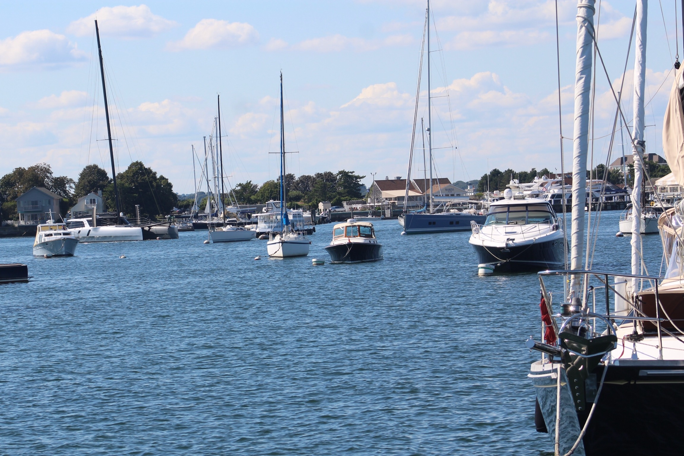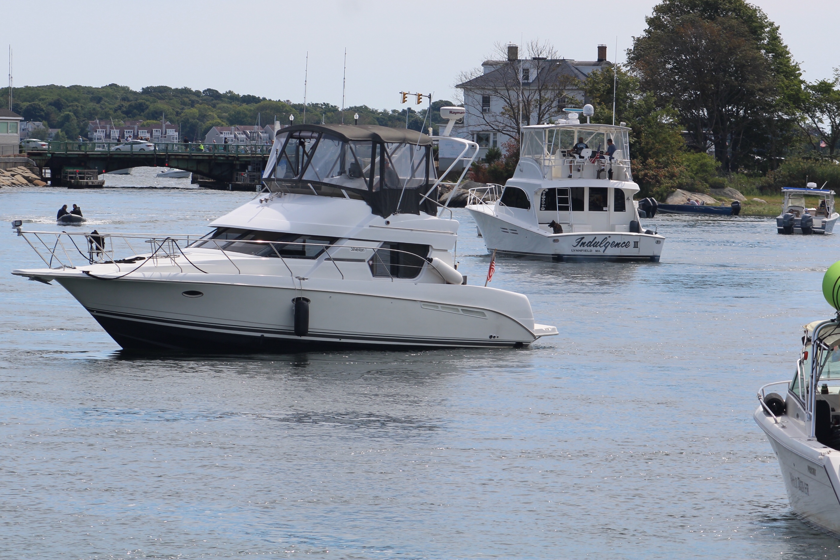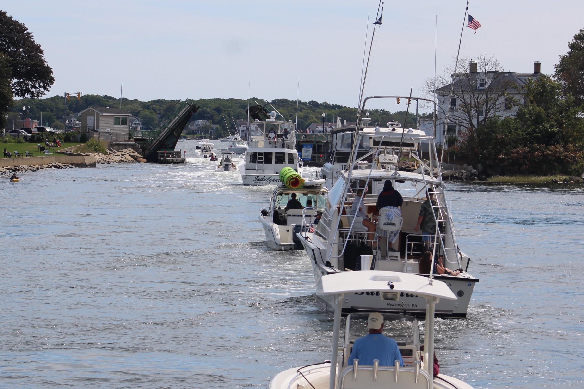 They did decide to cruise through the canal north of Gloucester and check out all of the activity though. That might have been a mistake with the number of people out on the water. The canal was full of boats moored and anchored in the channel with boat traffic moving both north and south.