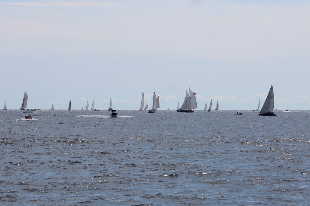 The crew was glad to get in the harbor, but found it full of boats as well. They looked for a place to drop the anchor, but eventually decided to just keep going to Boston. As they headed out of the harbor, they came across over a hundred sailboats and schooners out enjoying a sail.