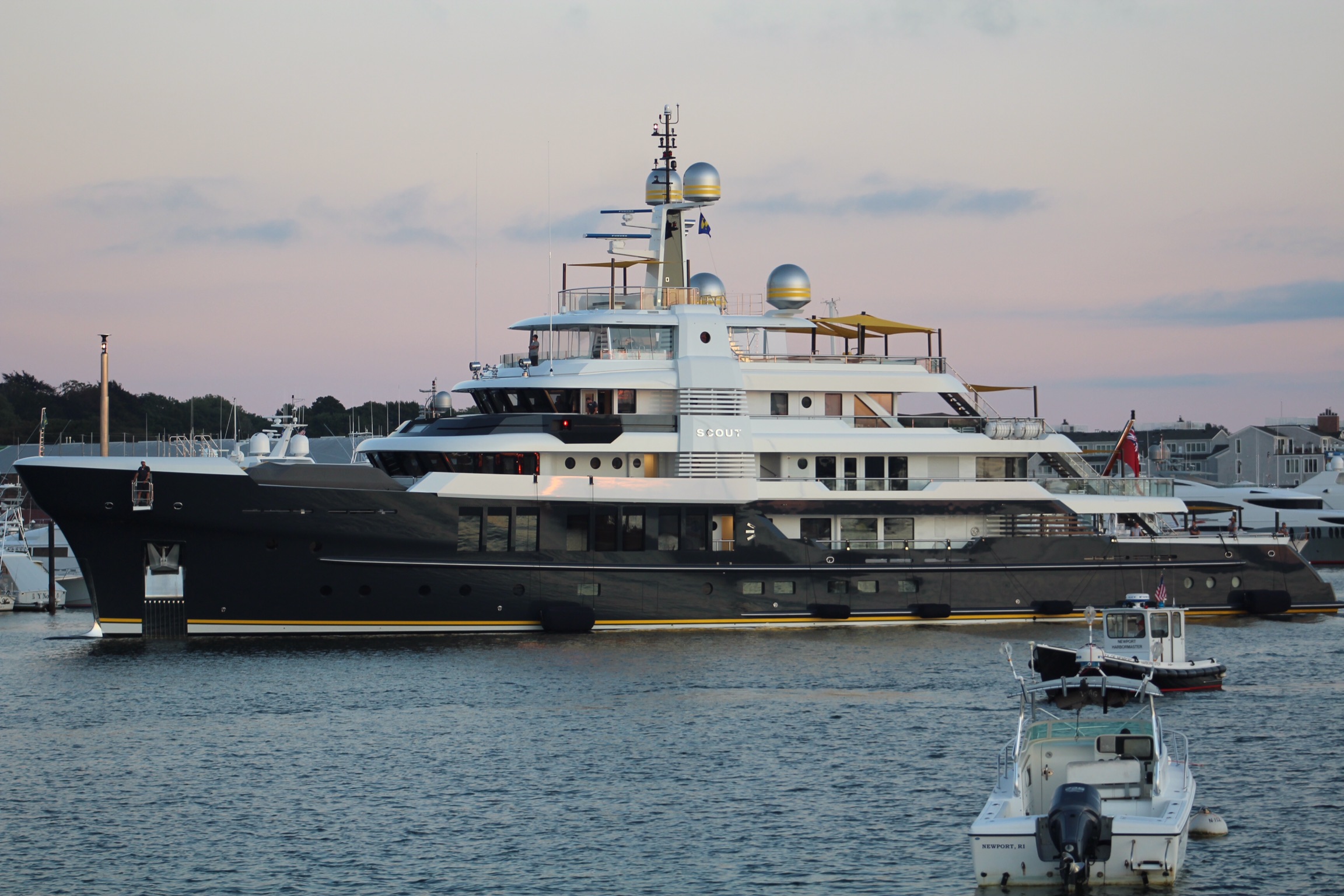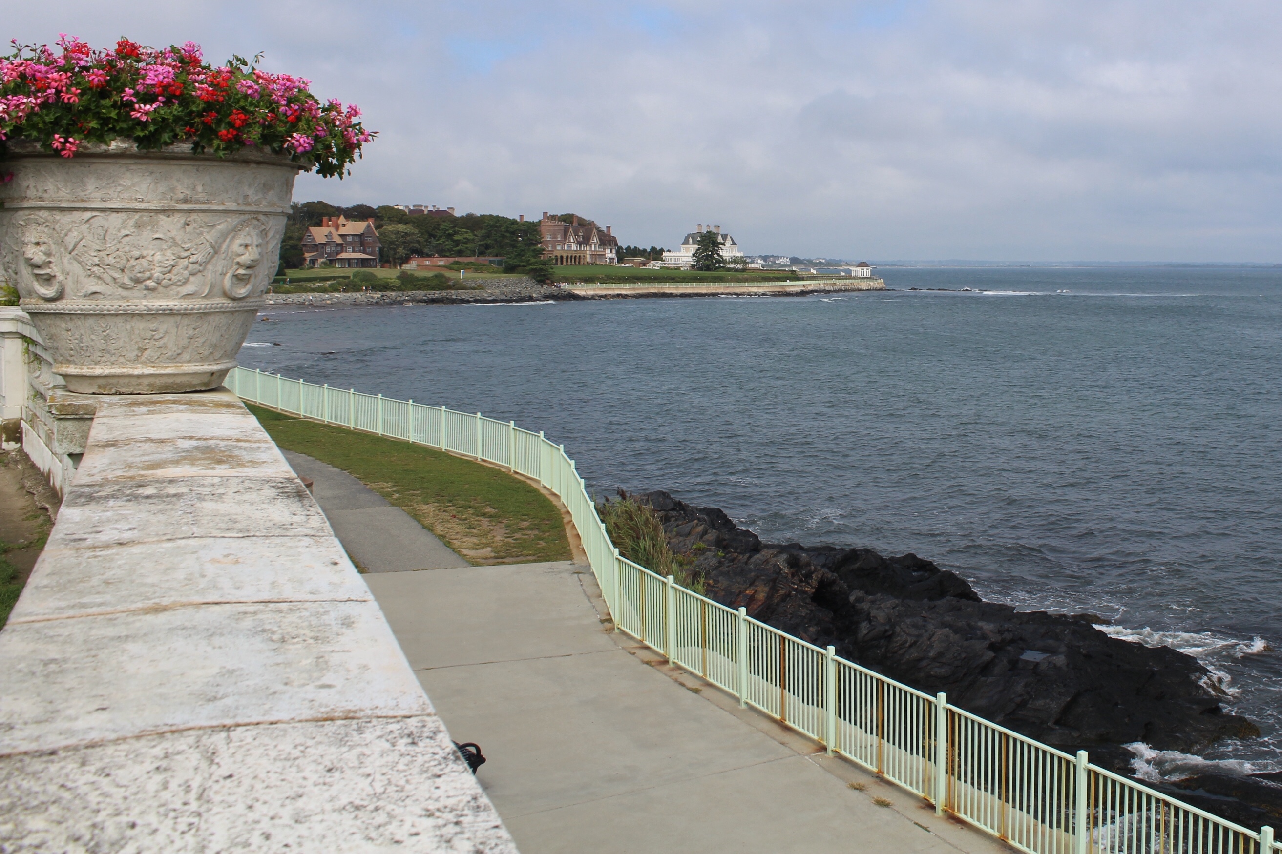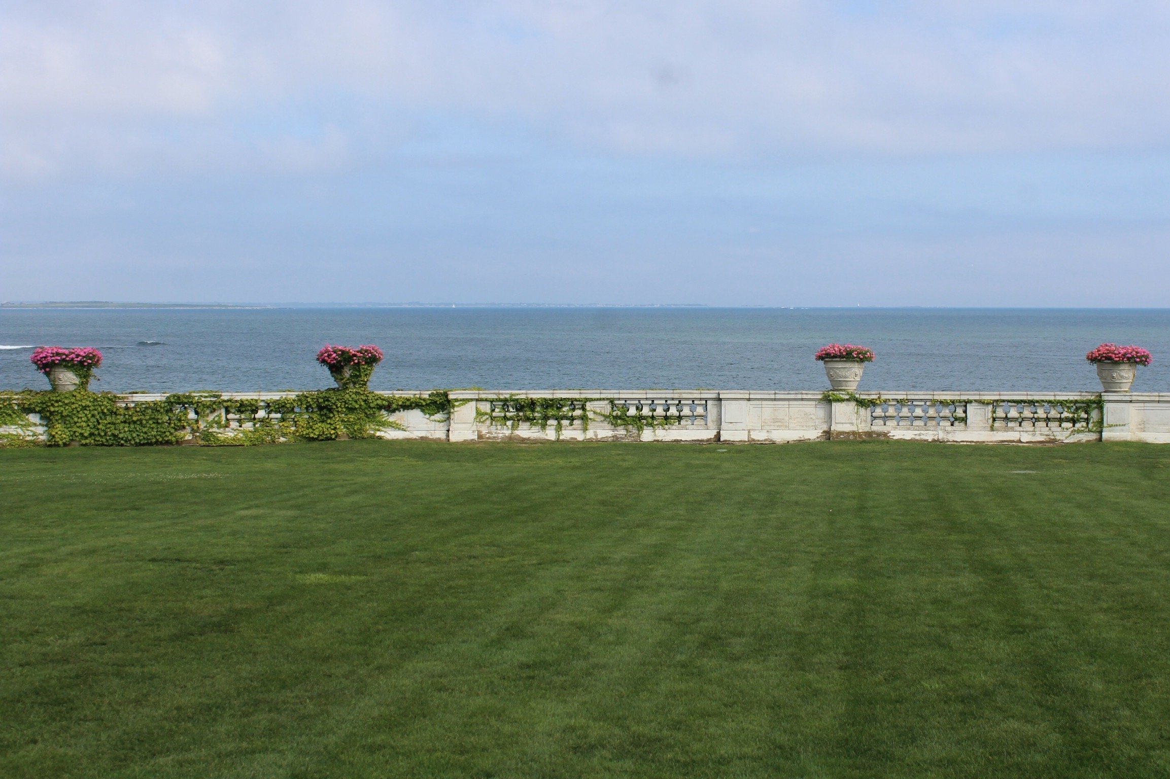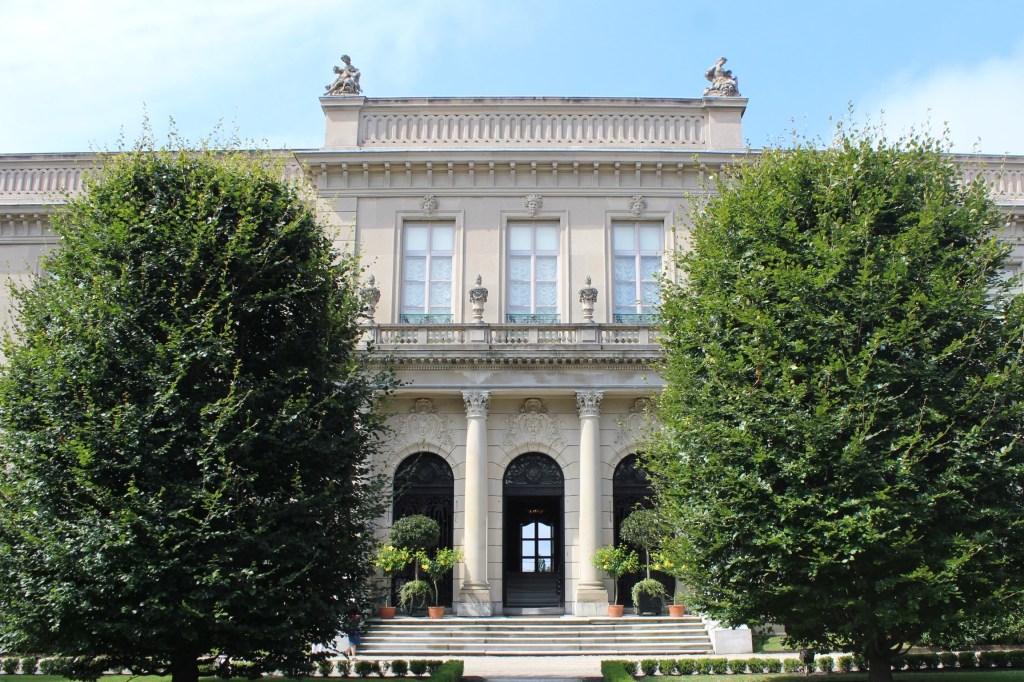 The crew learned they could stay another night around 1000, so they hailed the launch service to get a ride to shore. They then took the trolley to one of the Gilded Age Mansions, The Elms.