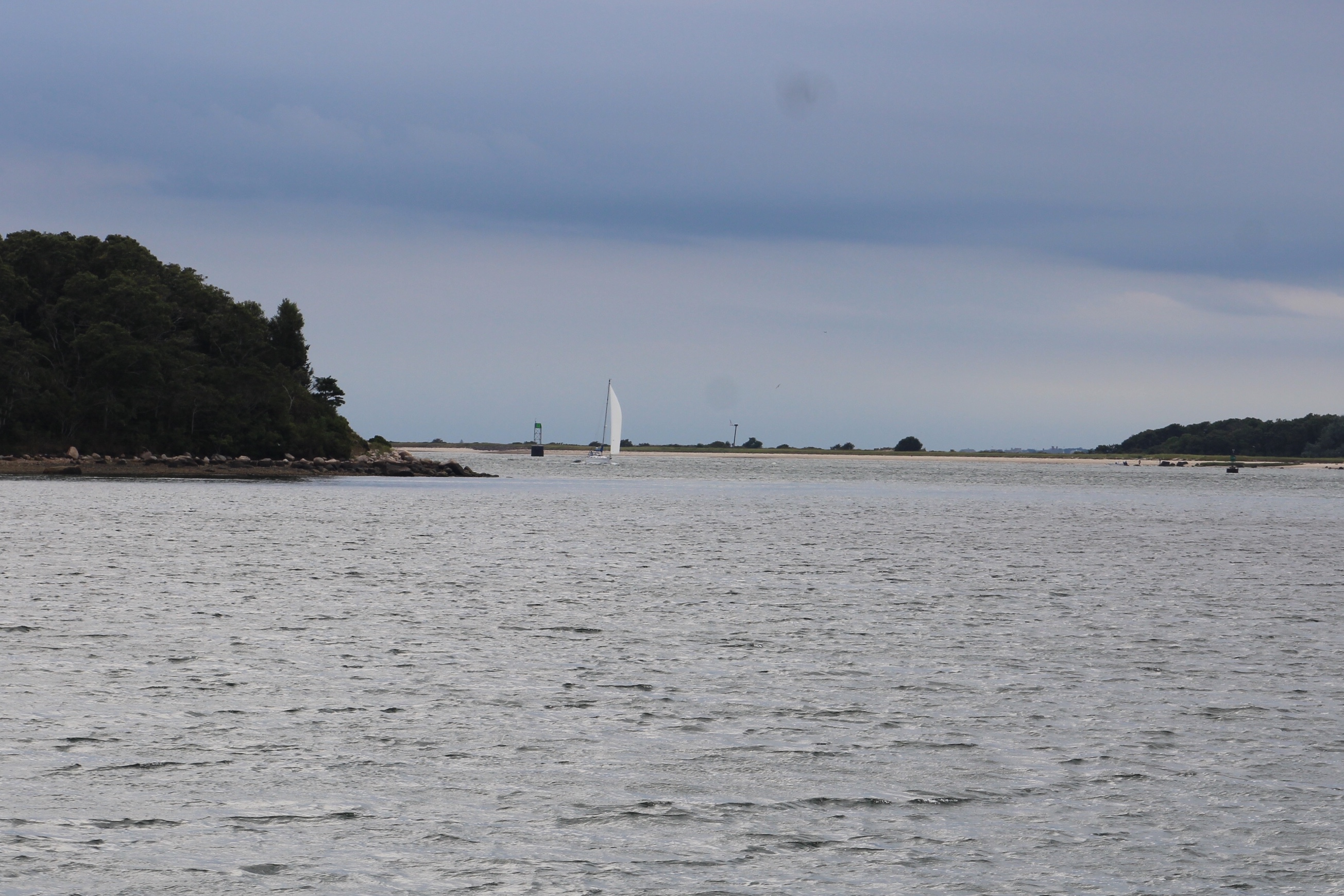 The crew was hoping they would not have a repeat of the nonsense they encountered yesterday. They weighed anchor and headed south towards the Cape Cod Canal. The wind was a bit blustery out of the west, so the skipper stayed as close to shore as safely possible.