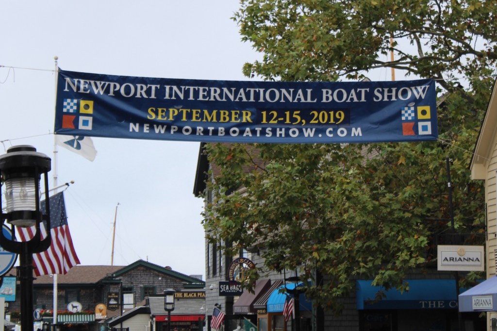 The crew dropped the mooring ball and made the cruise to Newport. The mooring field at Newport is first come first serve. With the three day weekend over, the skipper was hoping that boaters would have left and the crew would find a mooring ball. What the skipper did not know was that the Newport International Boat Show was scheduled for next week and the harbor was a buzz getting ready for the event.