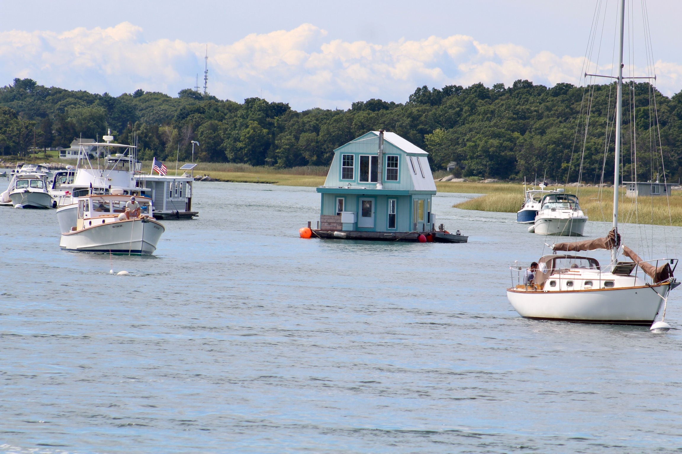 The crew had a crazy cruise today. Their destination was Gloucester; however, the Labor Day weekend coincided with a large Schooner Festival in town so there was no room in the inn. The marinas were full, the mooring balls were full, and the anchorages were full. The crew decided to push on to Boston.