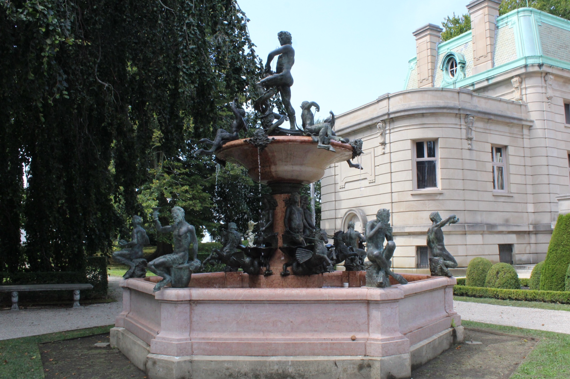 The Elms was the summer cottage for coal magnate Edward Berwind and his wife, Herminie. She was the daughter of the US Consul to Italy, so she was raised overseas and had a taste for Venetian art which shows through in The Elms.