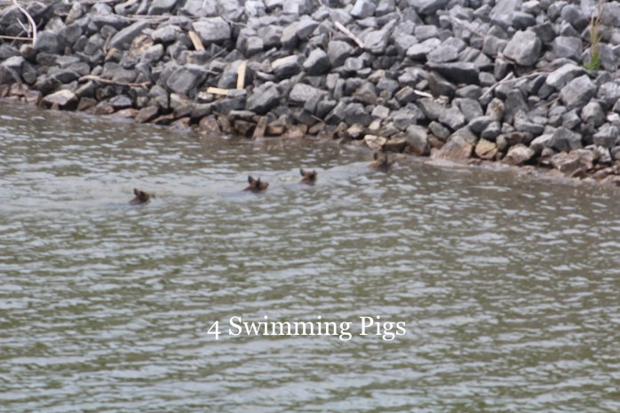 Four pigs swimming across the Tenn-Tom