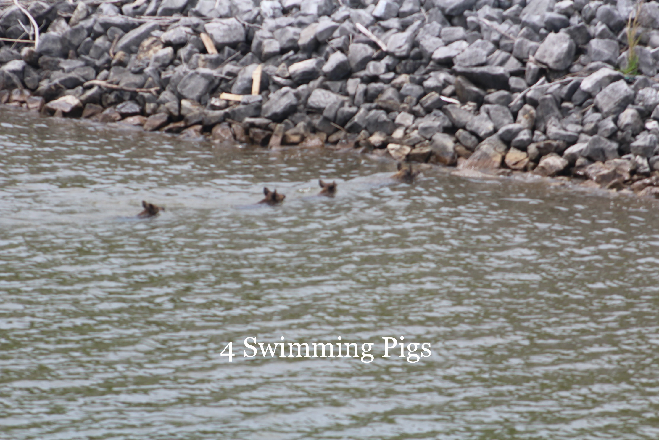 Four pigs swimming across the Tenn-Tom