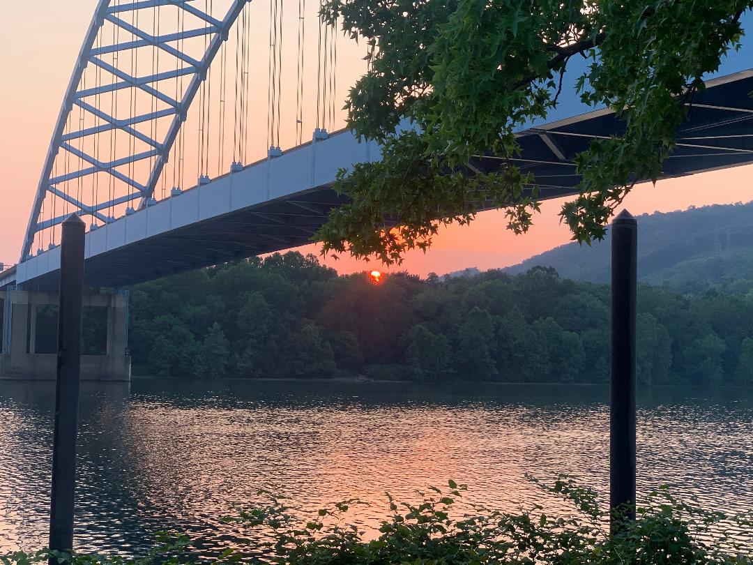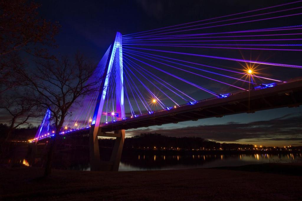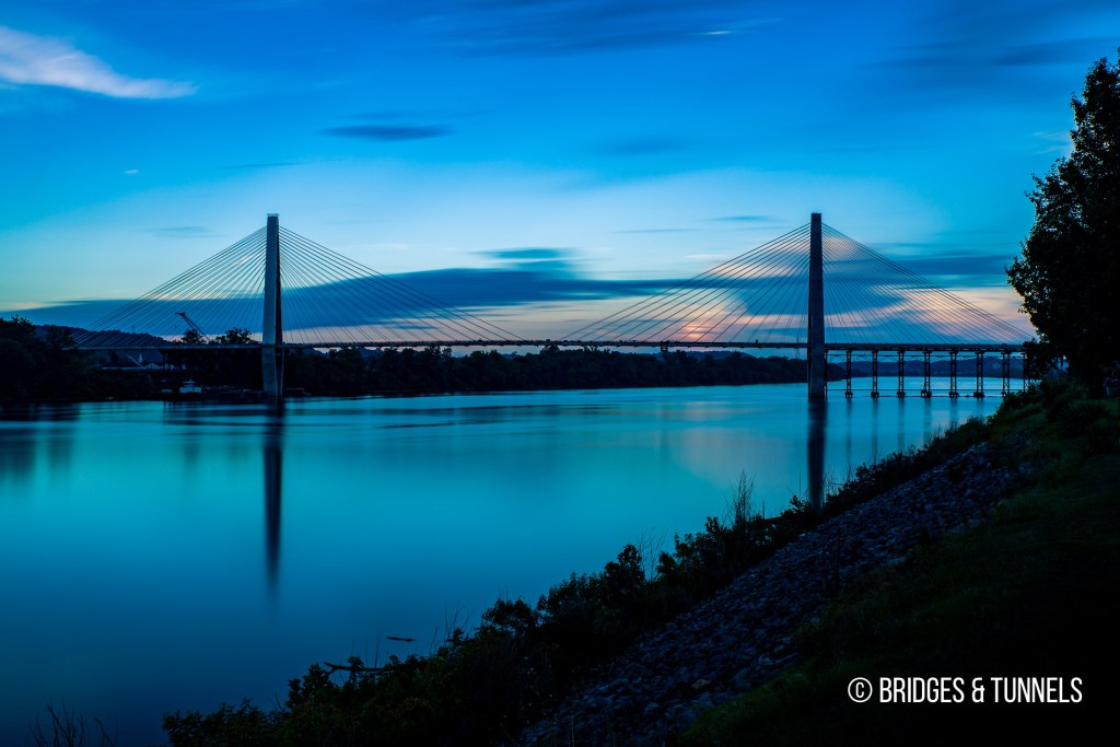 The skipper was fascinated by the design of the new Ironton Bridge that carries traffic from Ironton, Ohio to Russell, Kentucky. But was amazed how pretty the bridge was when lit at night.