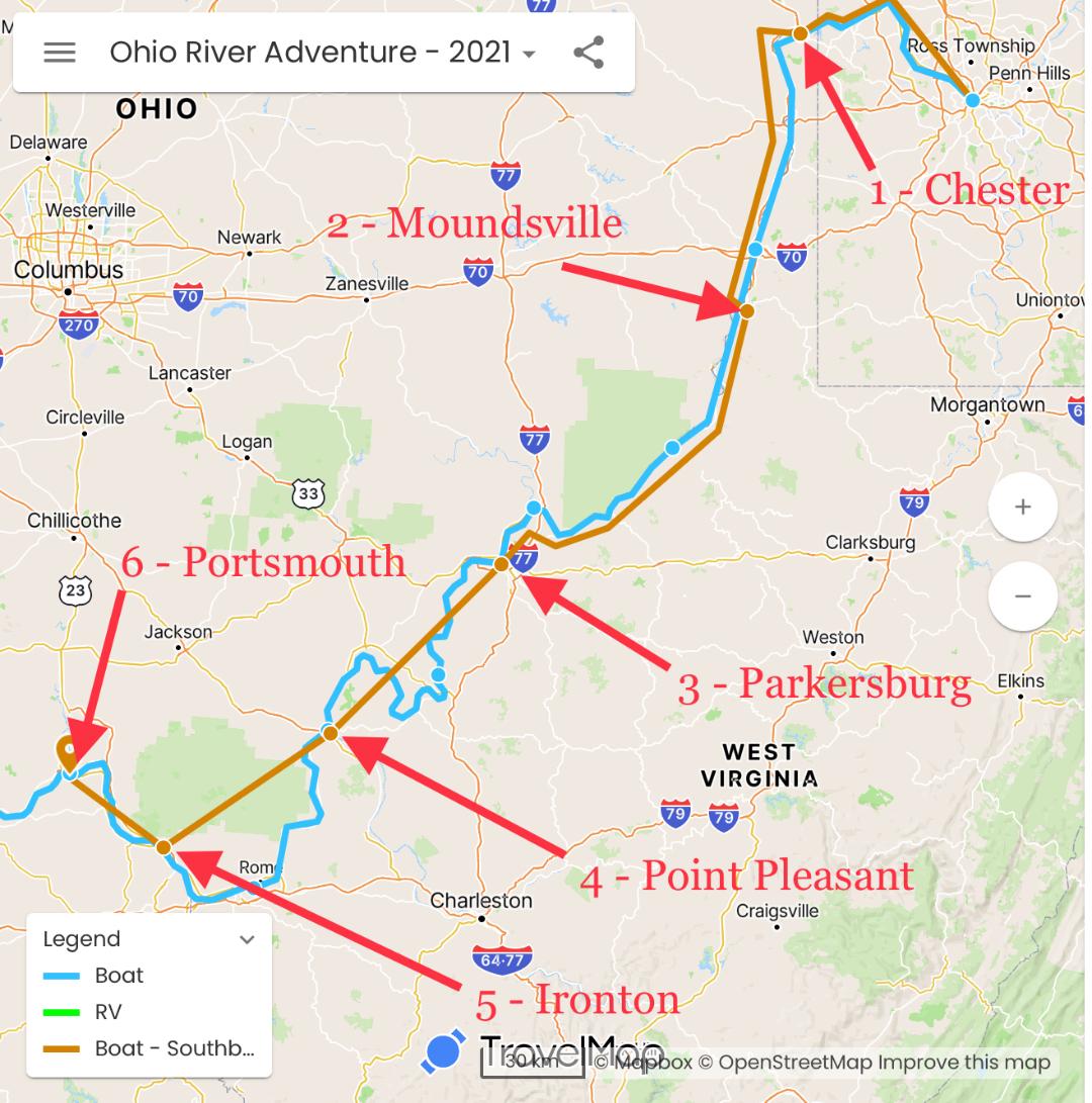 The crew headed down river and made a new stop in Parkersburg. The crew walked around the waterfront park but did not find much interesting history, other than the Blennerhassett Museum in town has more original artifacts from the original home than the rebuilt home and State Park over at the island.