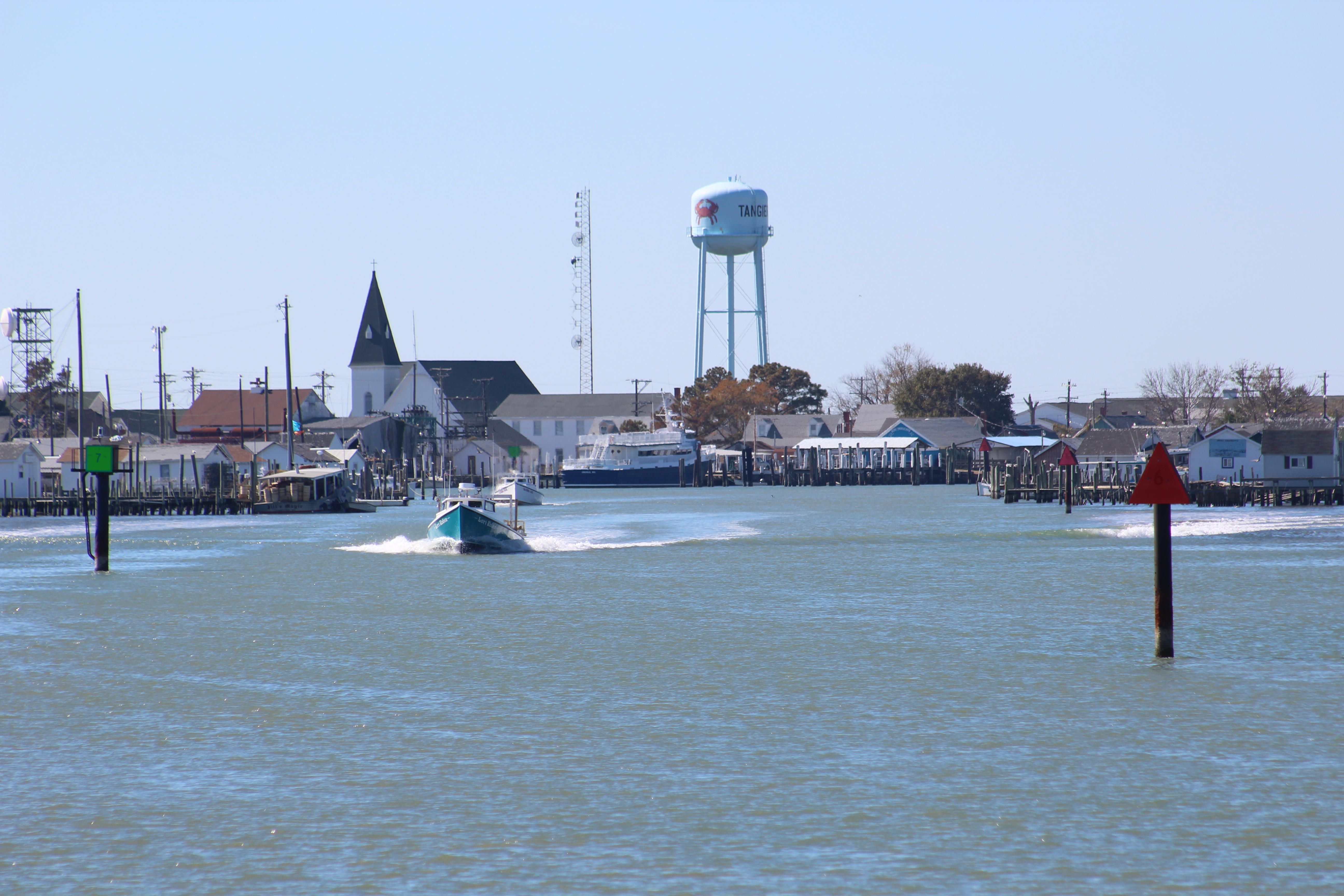 The crew did not see much as they were crossing the Bay again and land was far off. However, when they entered the Eastern Bay they began to encounter a steady stream of boaters headed out to the main Bay.