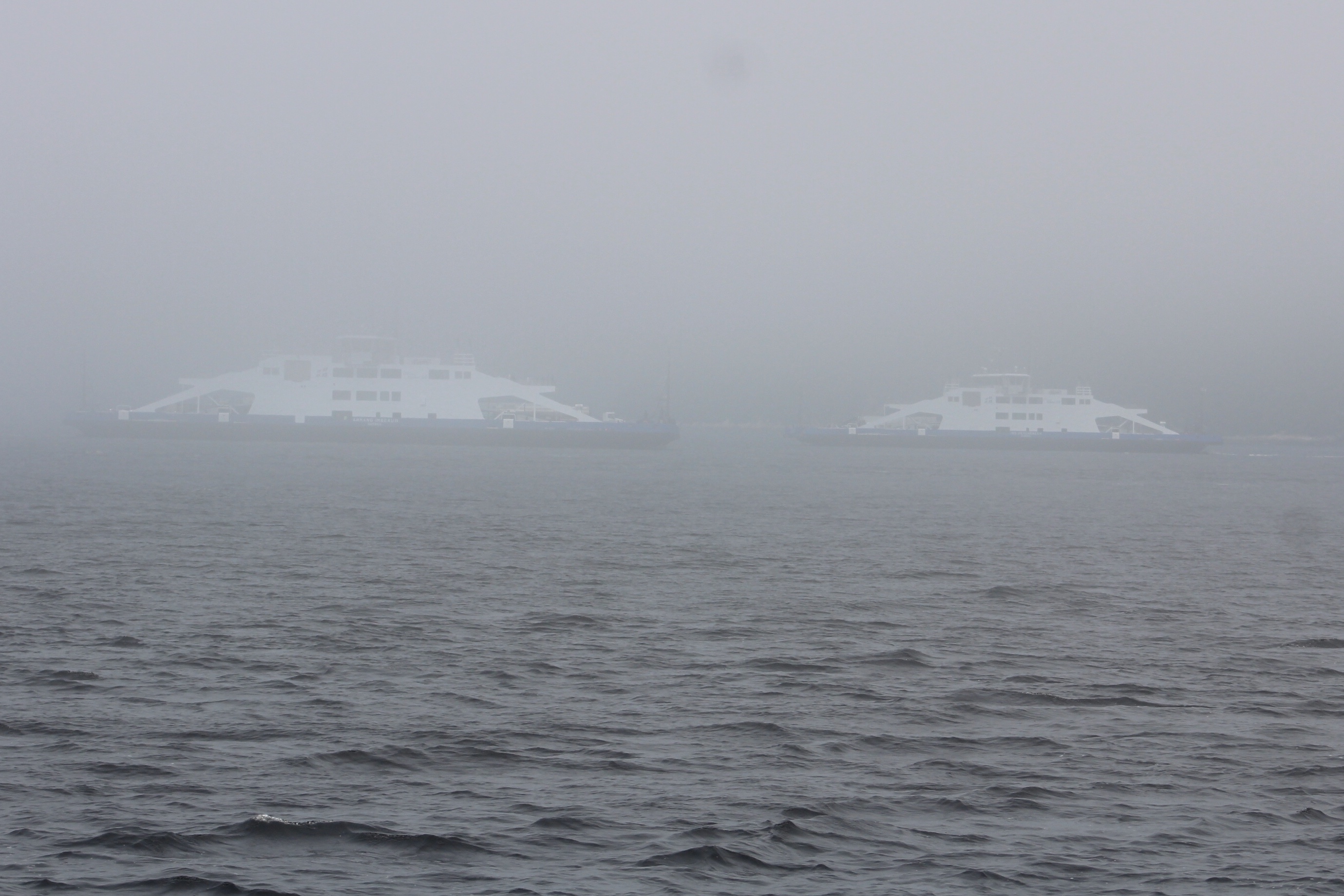 In just a few minutes two large vessels appeared on the radar, and then a few minutes later the crew could finally see the source of the horn blasts.