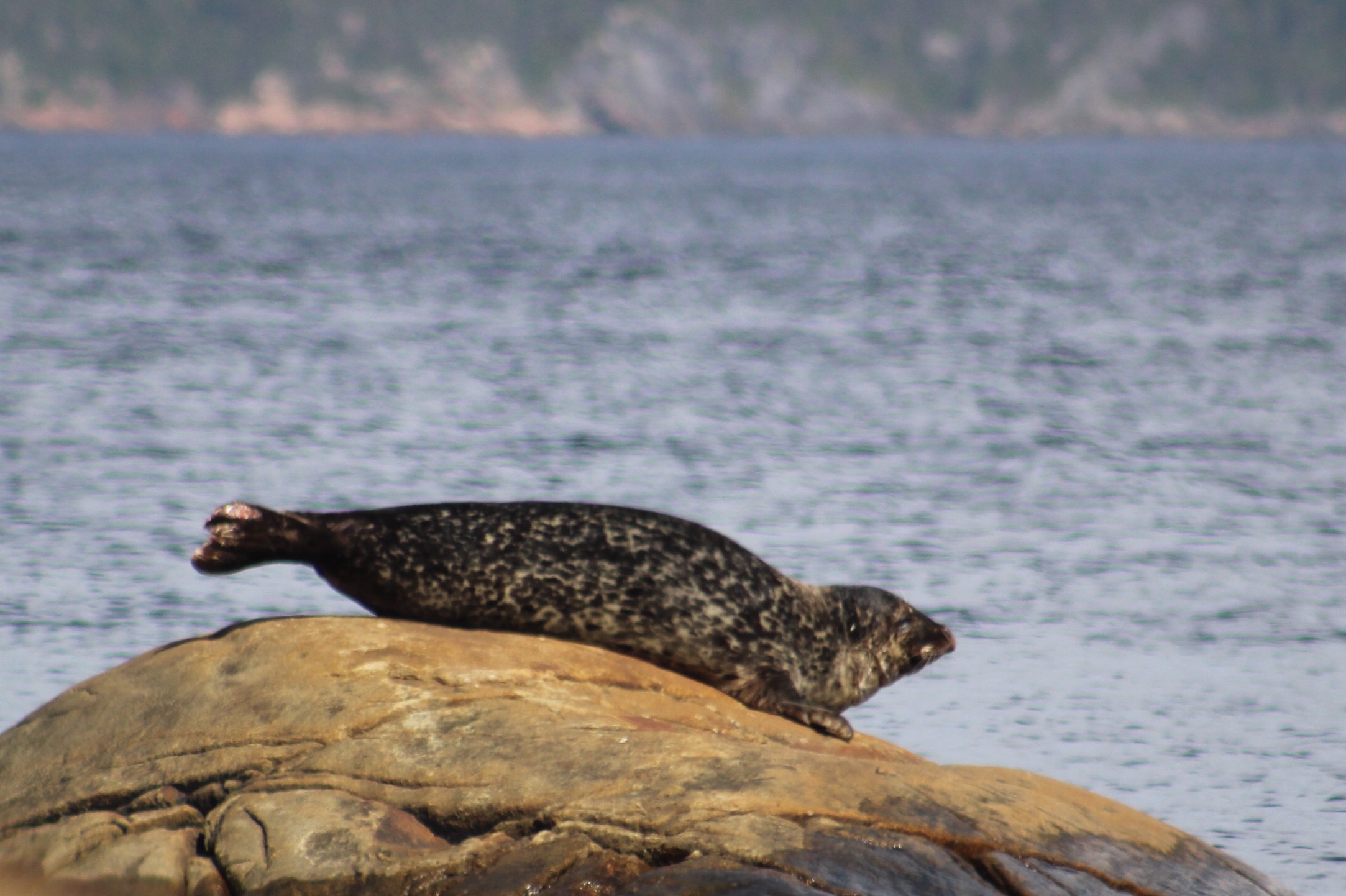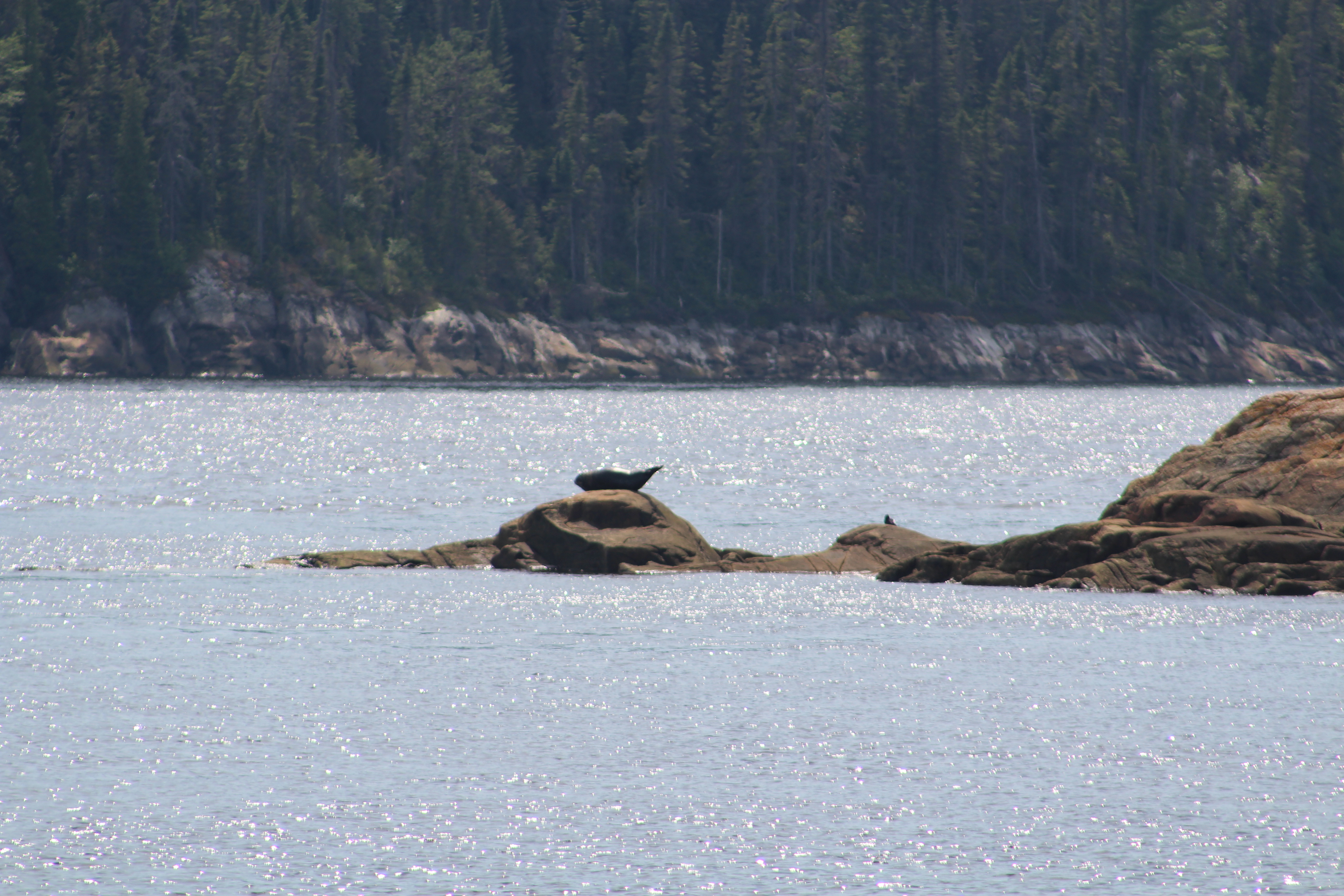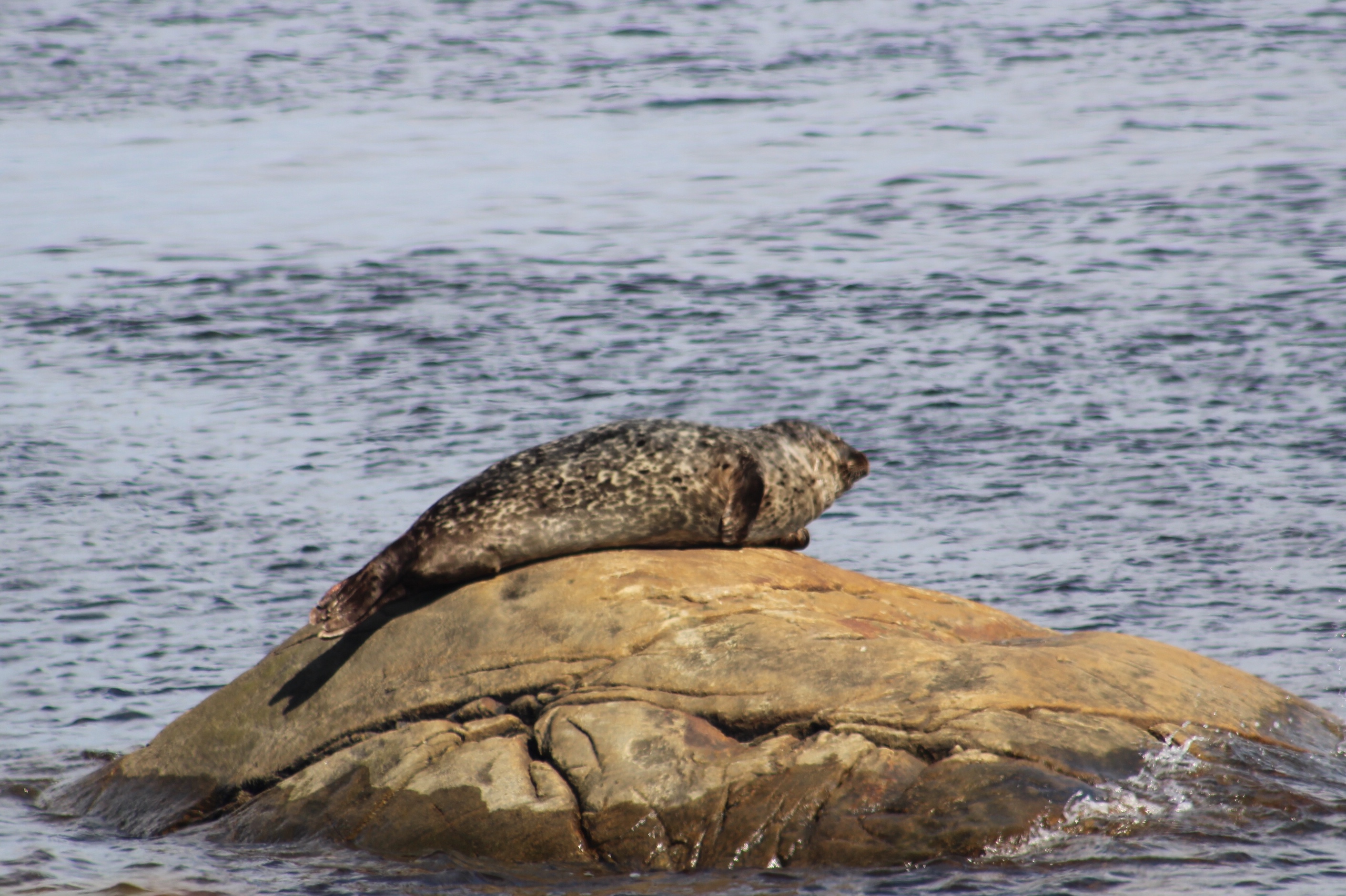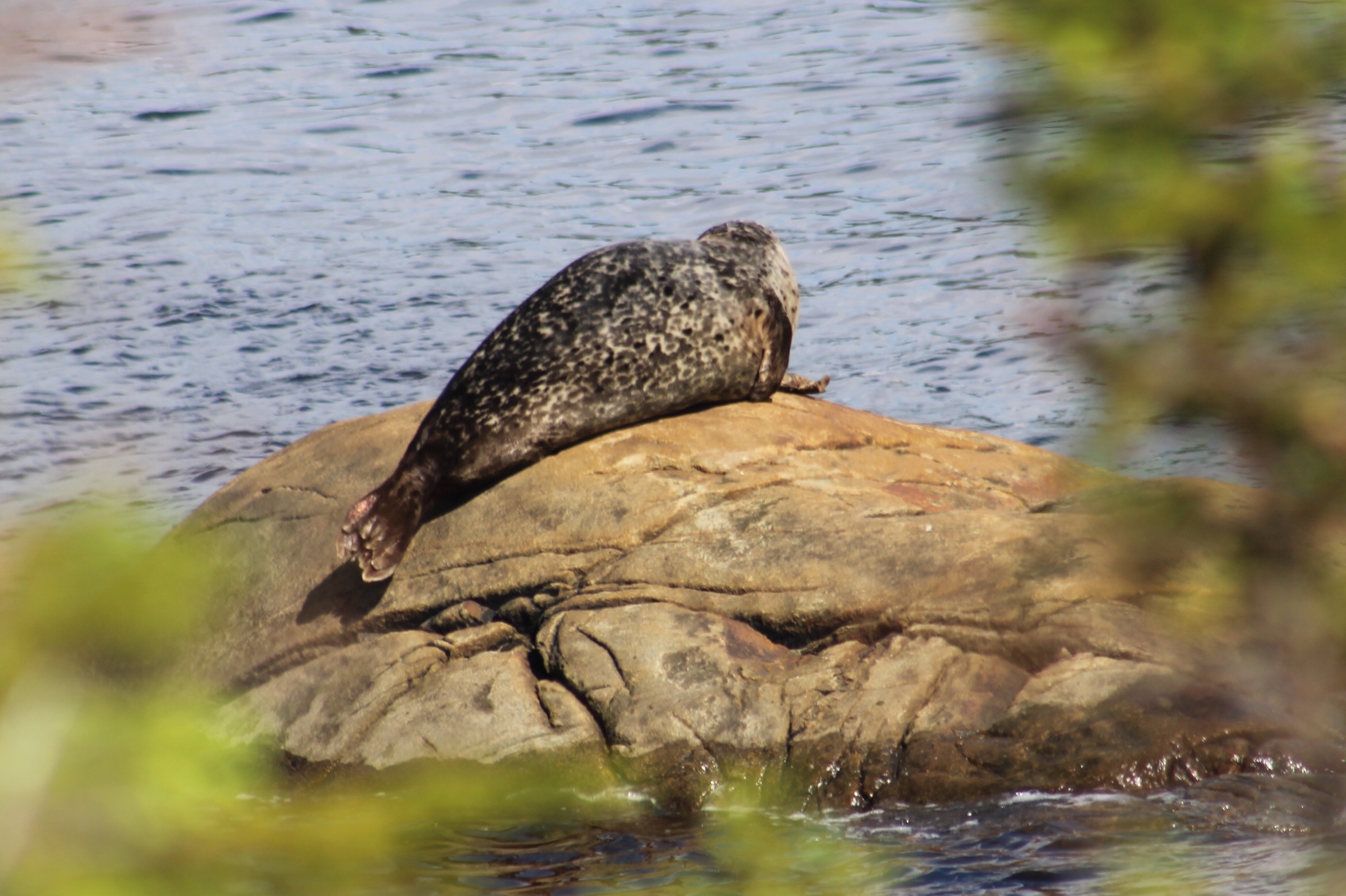 Within the hour of anchoring, the Admiral noticed a Harbor Seal sunbathing on a rock protruding out of the water.