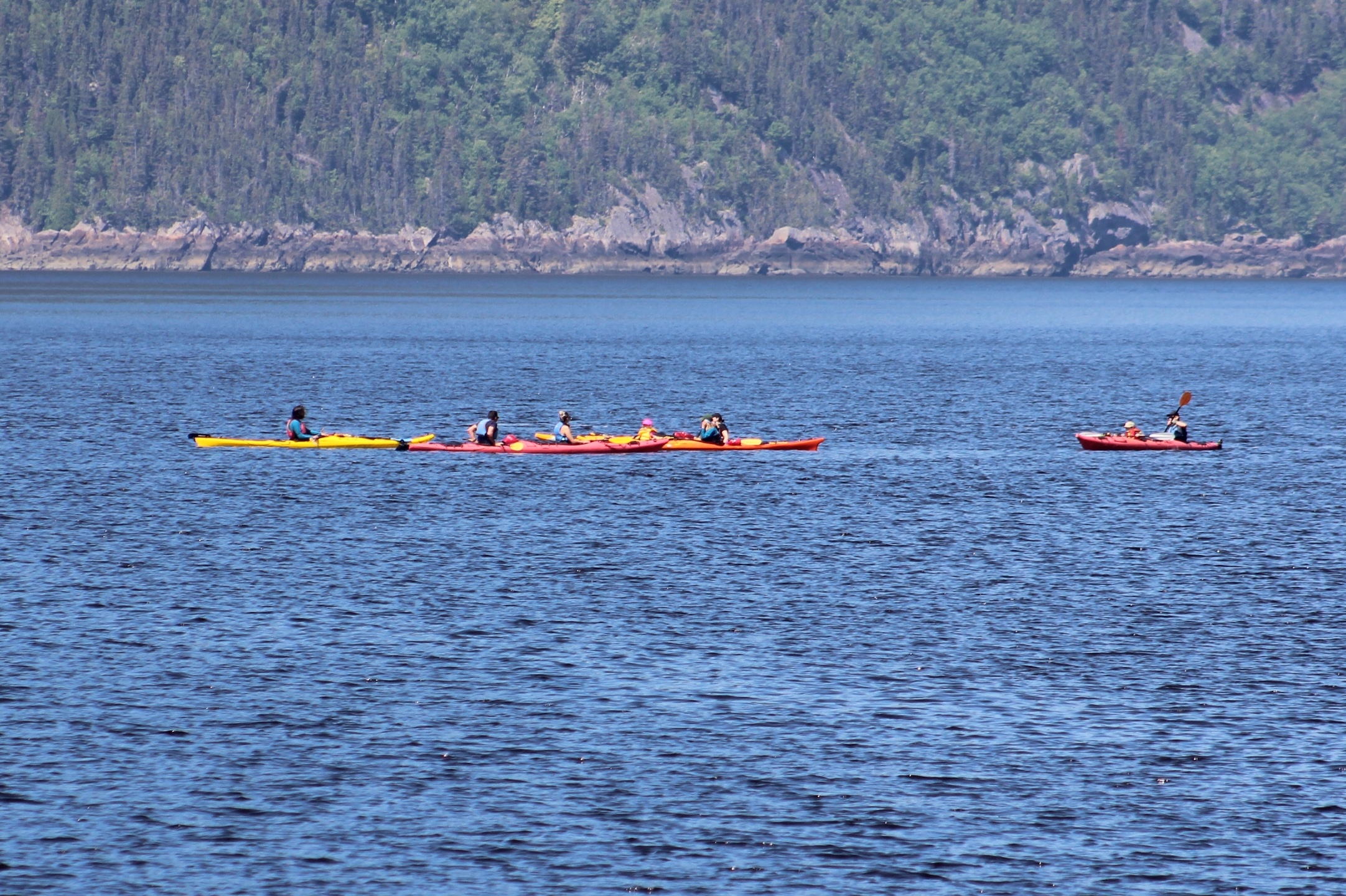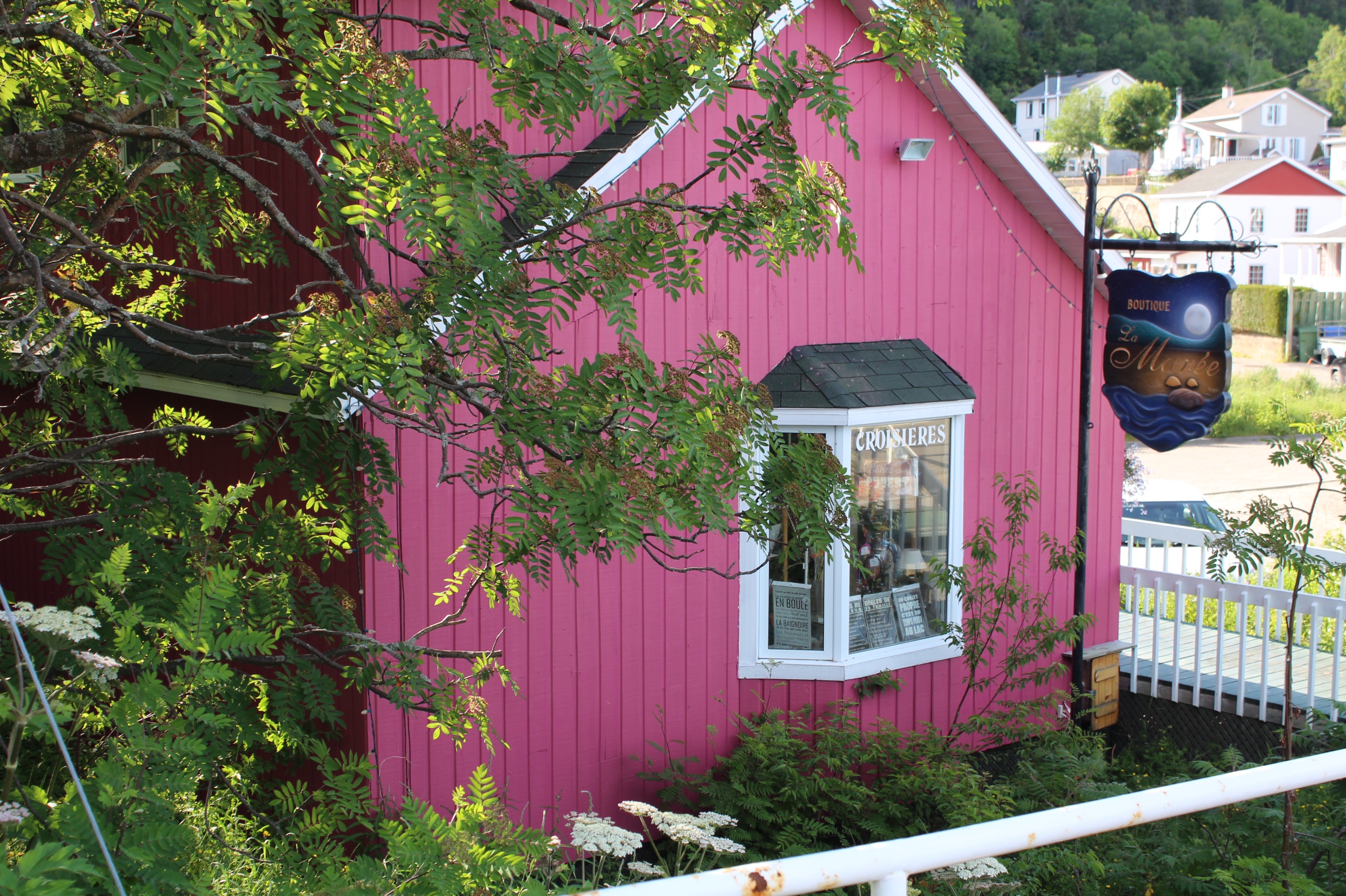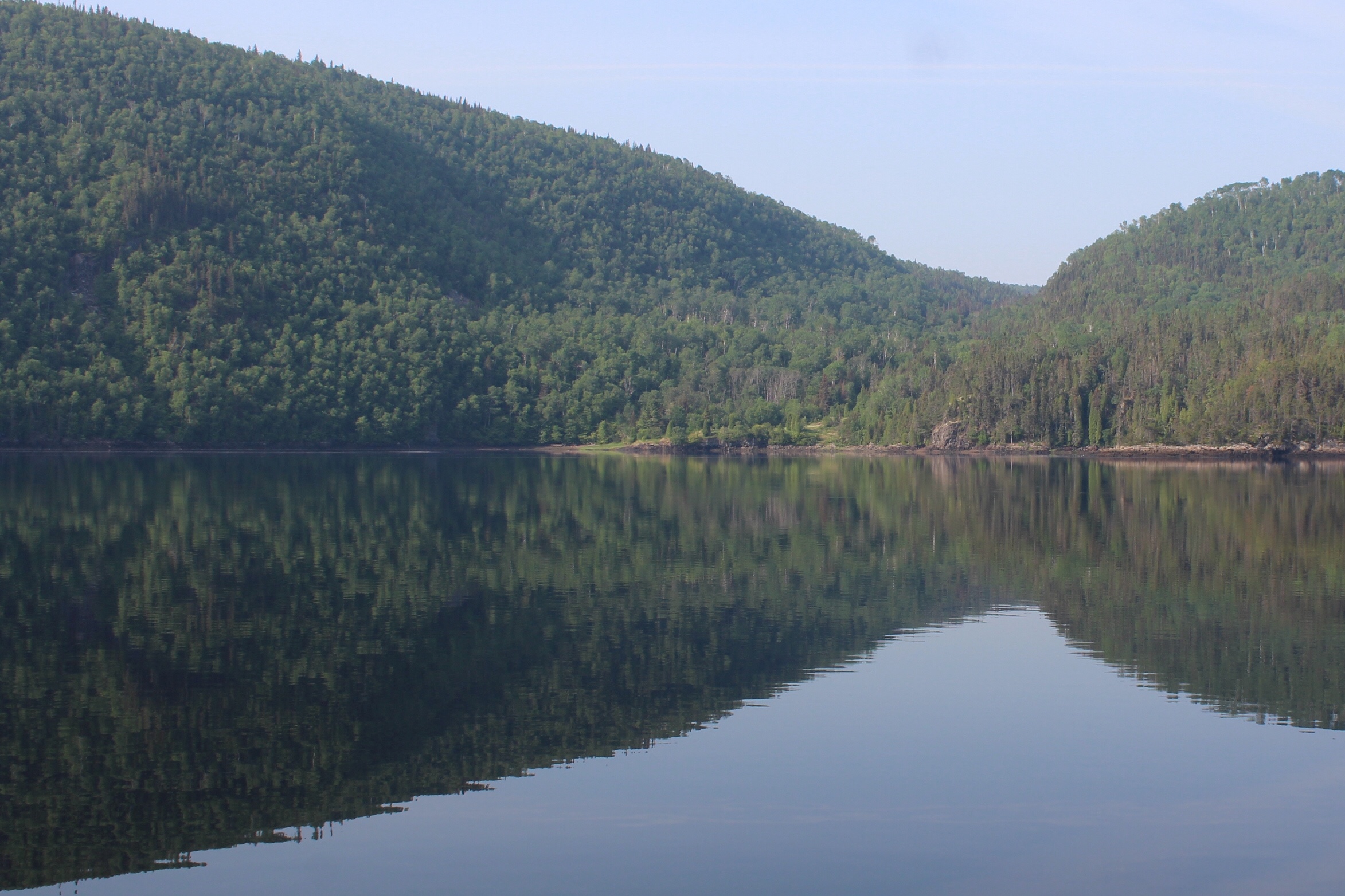 After dinner, the crew hiked a loop trail to see if they could spot some whales from shore. Their walk was rewarded with several pods of Belugas swimming out in the entrance channel to Tadoussac.