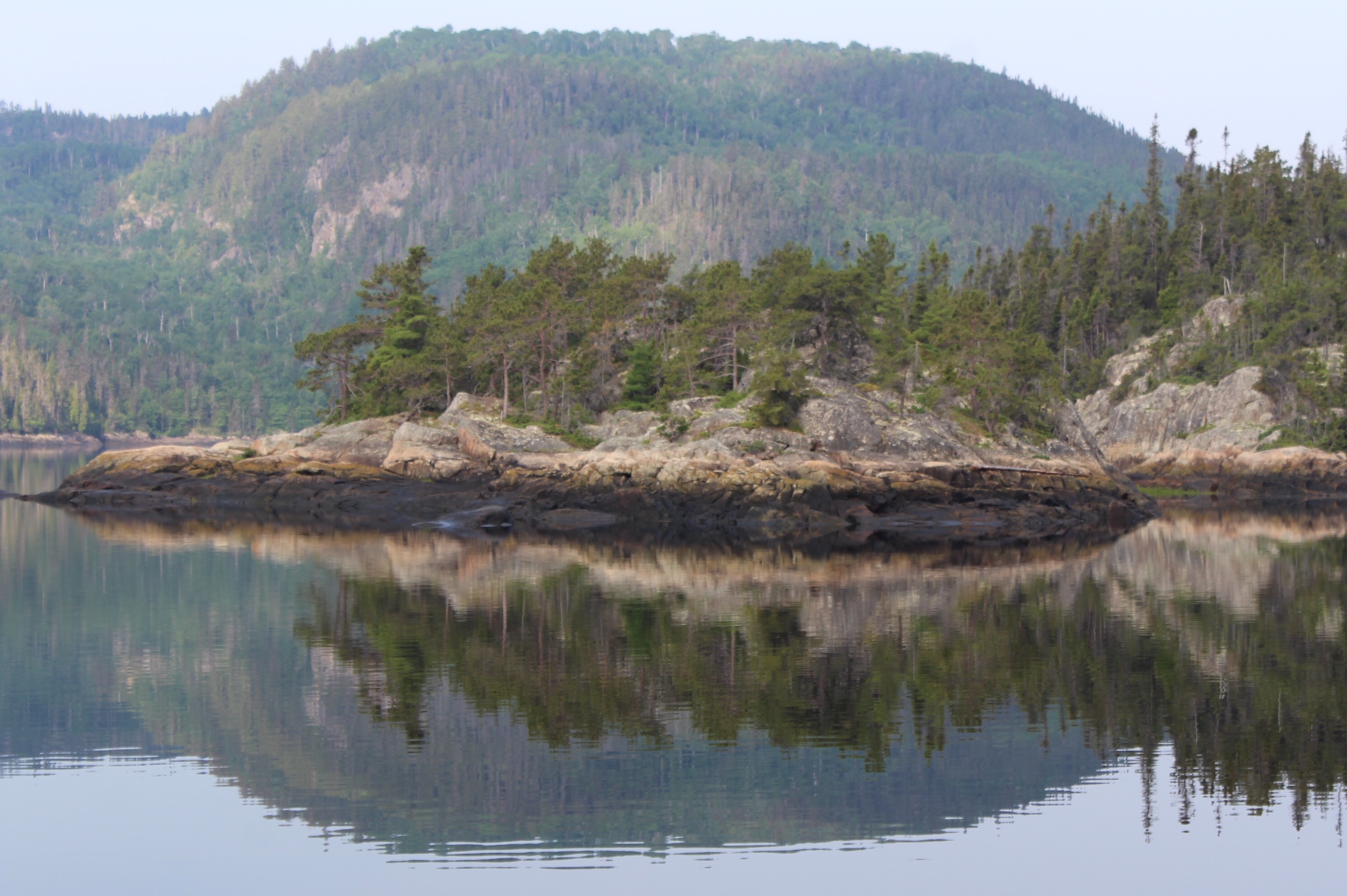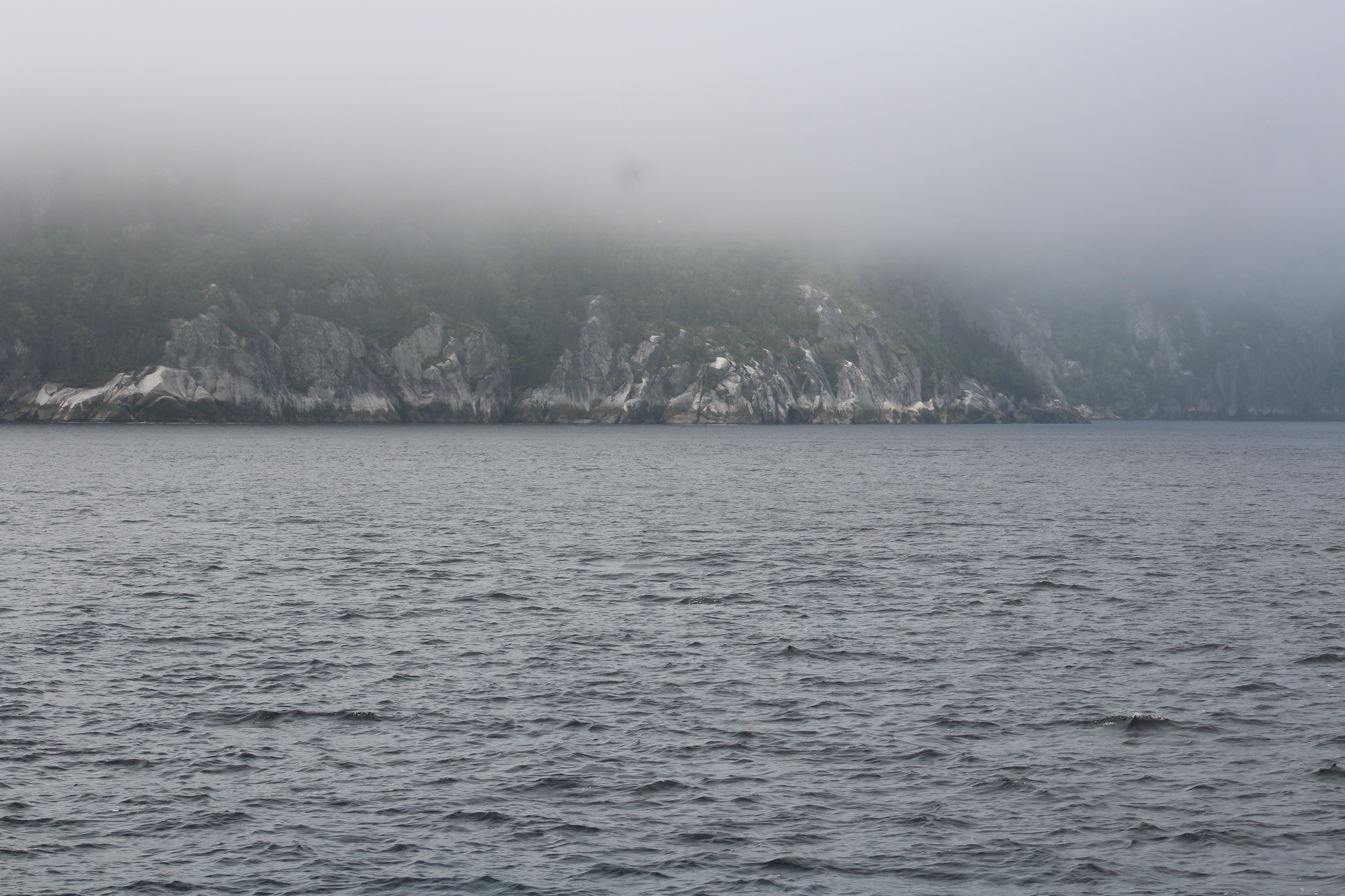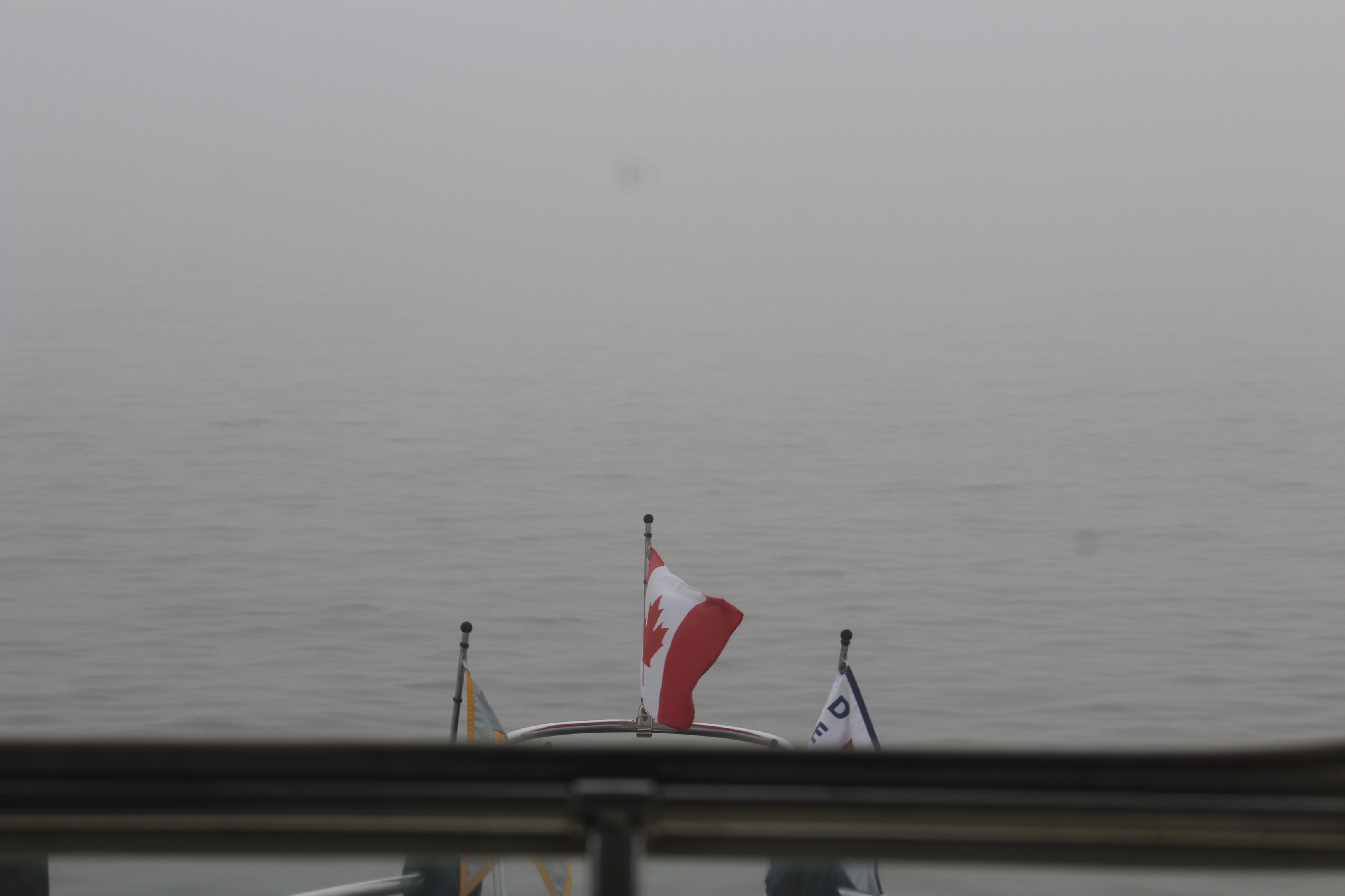 The cruising guides all suggest to leave Cape Eagle four hours after high tide at Point-au-Pere. For the crew, that meant leaving at 0702. When the skipper first looked outside he was a bit surprised to see the heavy fog. There was not much choice but to leave as suggested and hope the fog burns off quickly.