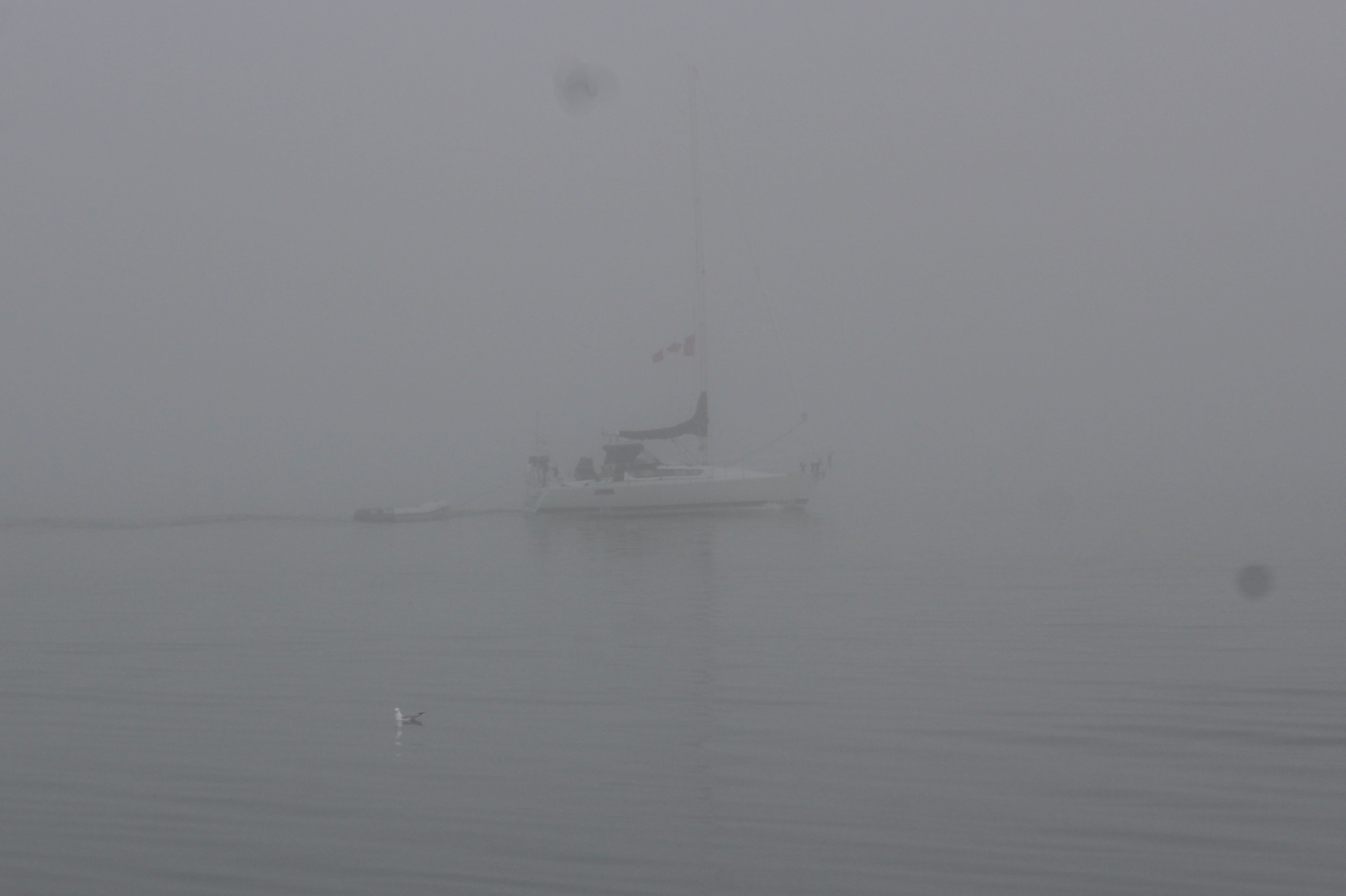 So much for hope. The fog hung in there until about noon before it started to lift. That makes for a stressful day when you cannot see much past the bow.