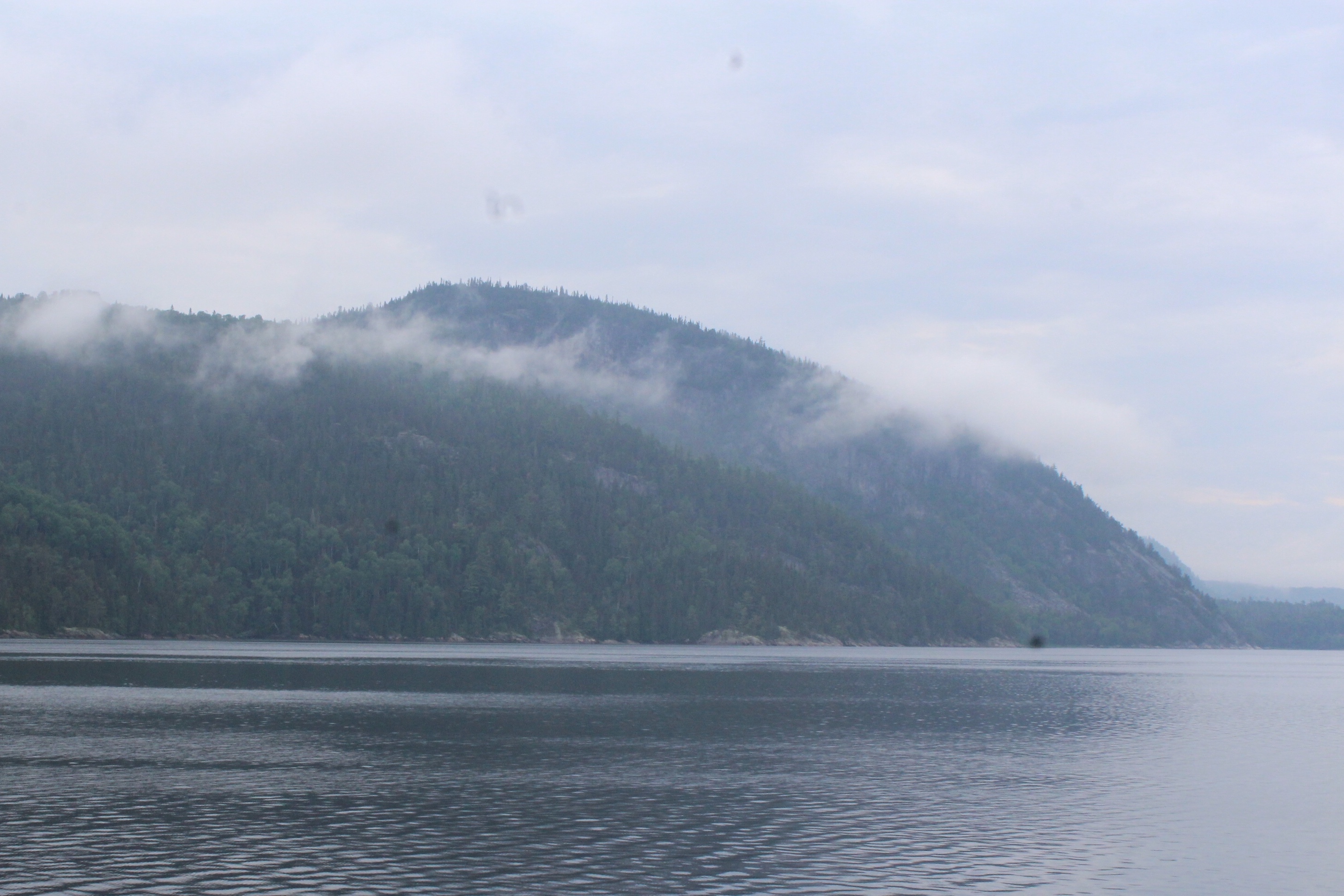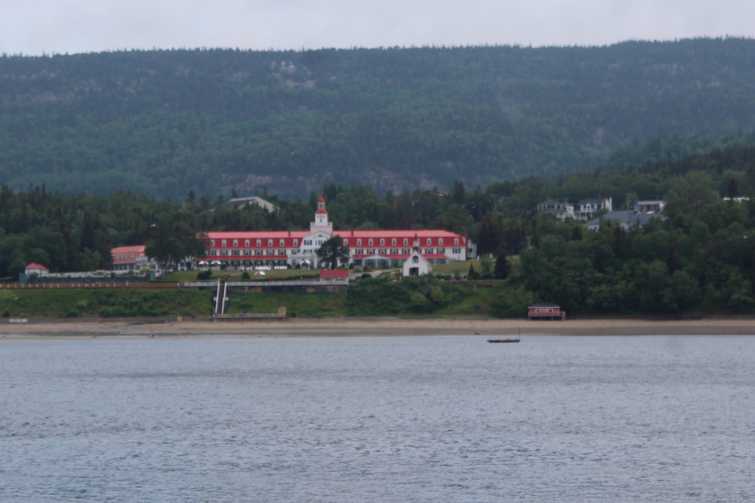 The crew woke to rain and light fog. After the rain stopped, the crew weighed anchor and started towards the town of Tadoussac. The skipper kept the throttles set at idle speed and was making 10-11 mph as the current ebbed out with the tide. Once a cell signal was achieved, the skipper called the marina to make a reservation. Luckily the marina had a spot for them.