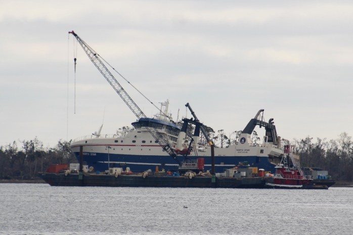 Before the crew got started this morning they welcomed some folks from Kentucky onboard. They were doing a photo shoot at the City Park and Marina.
