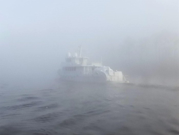 Somehow, Mary managed to get a photo of the boat in the fog as it passed them.