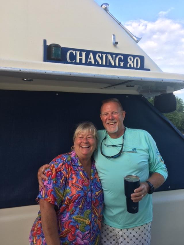 She went down and found the literature on the boat the crew had looked at back in Ft Myers. They sure looked similar. Once the boats were docked at Hoppie’s, the Admiral went over to the Kailani and confirmed her suspicions, yes it was the same boat. Tracy gave the Admiral a tour of the new and improved 44 foot Tollycraft.
