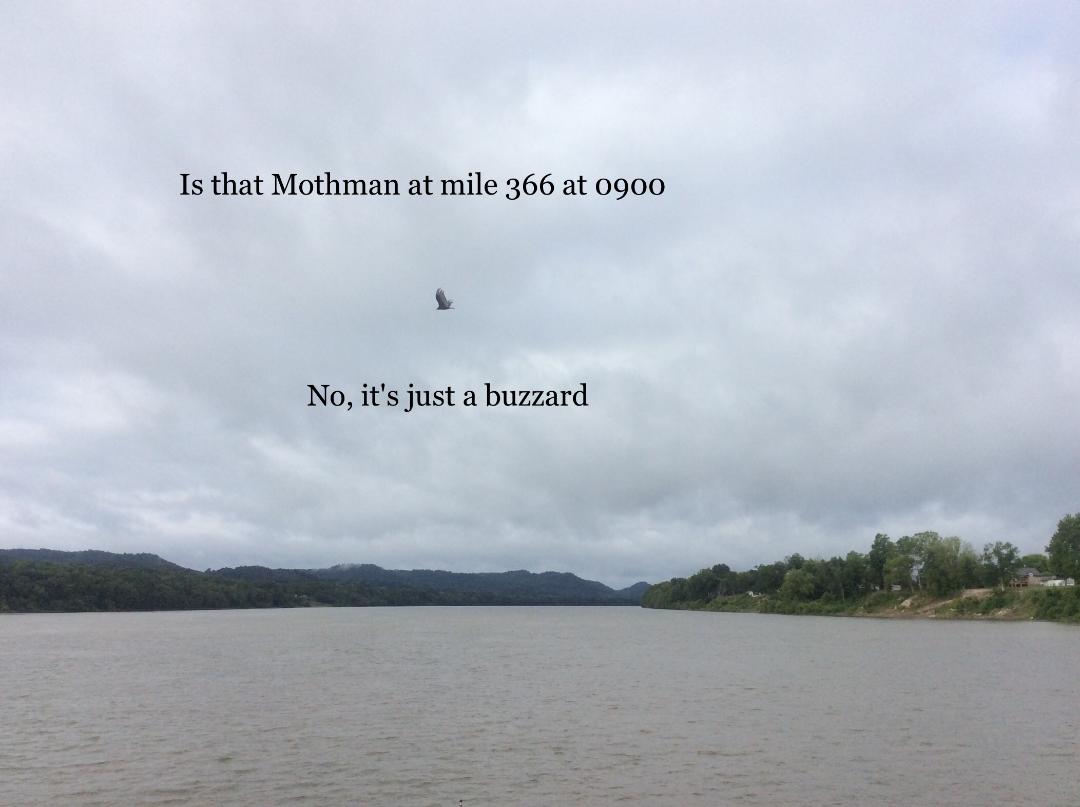 To lighten the mood of the day, the skipper sent the flotilla a message about the myth of the dragons and cautioned everyone to keep a sharp lookout on the cliffs and report any sightings. He also said that if a Piasa was spotted it would be every boater for themselves. He then thanked Blurred Lines for leading the way today and mentioned that they might be the first attacked.